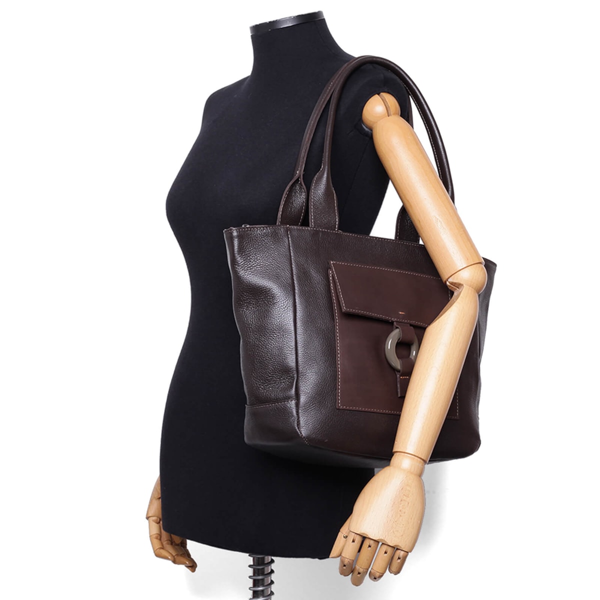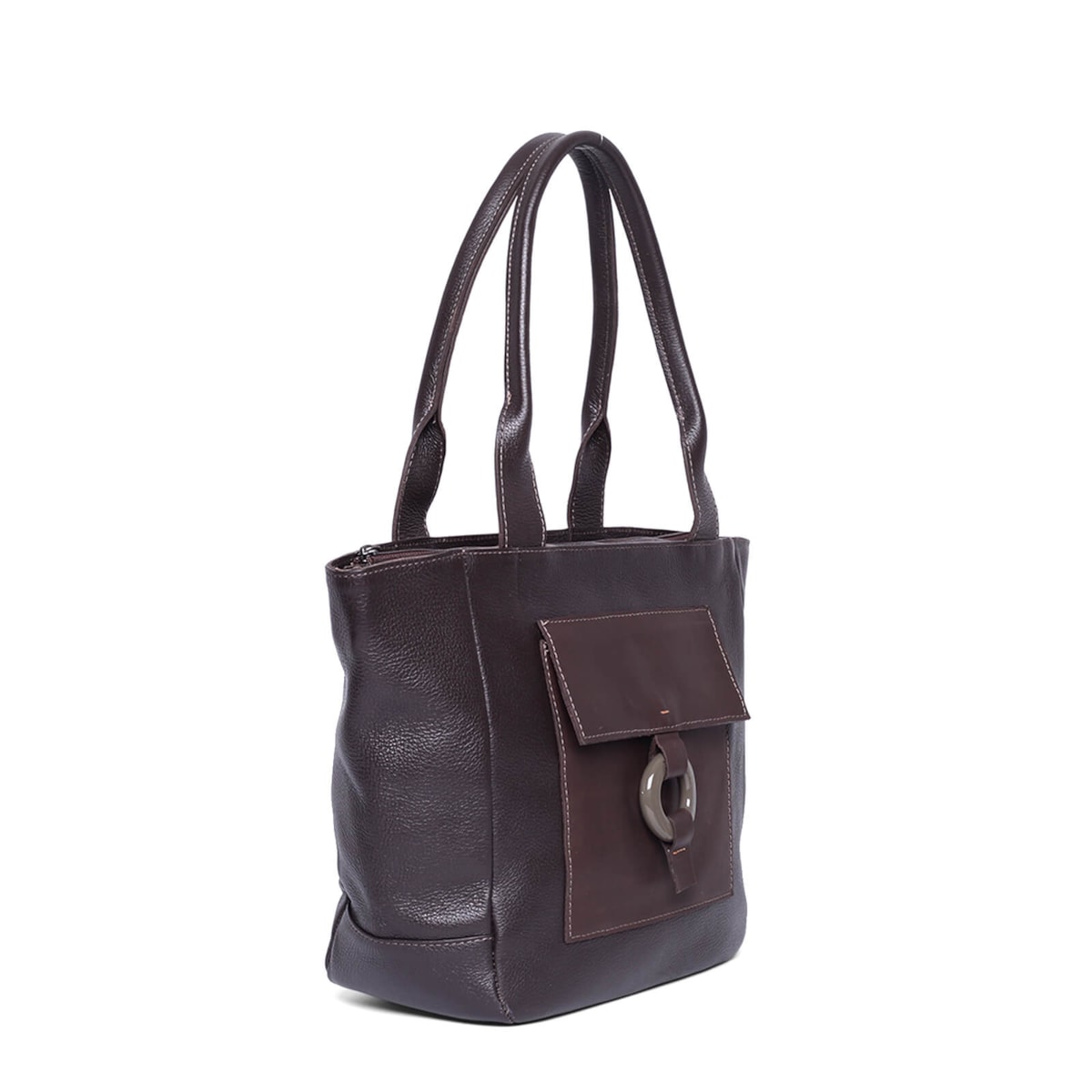 No estilo shopping bag, a bolsa em couro 60916 é ideal para quem gosta de carregar muitos acessórios. Possui bolso interno e externo, além de porta chaves para melhor organização.