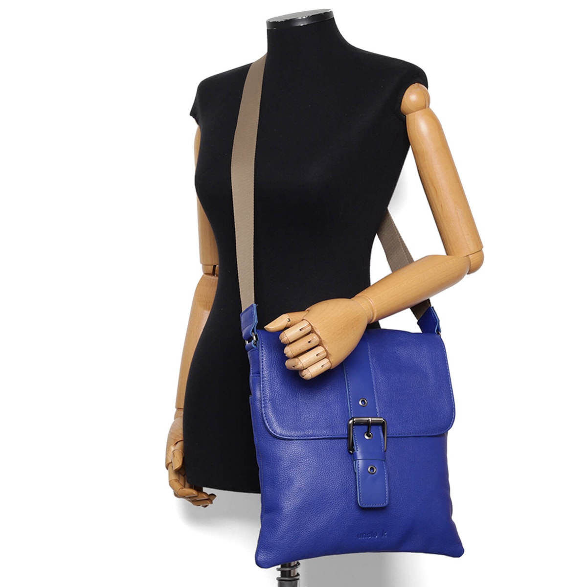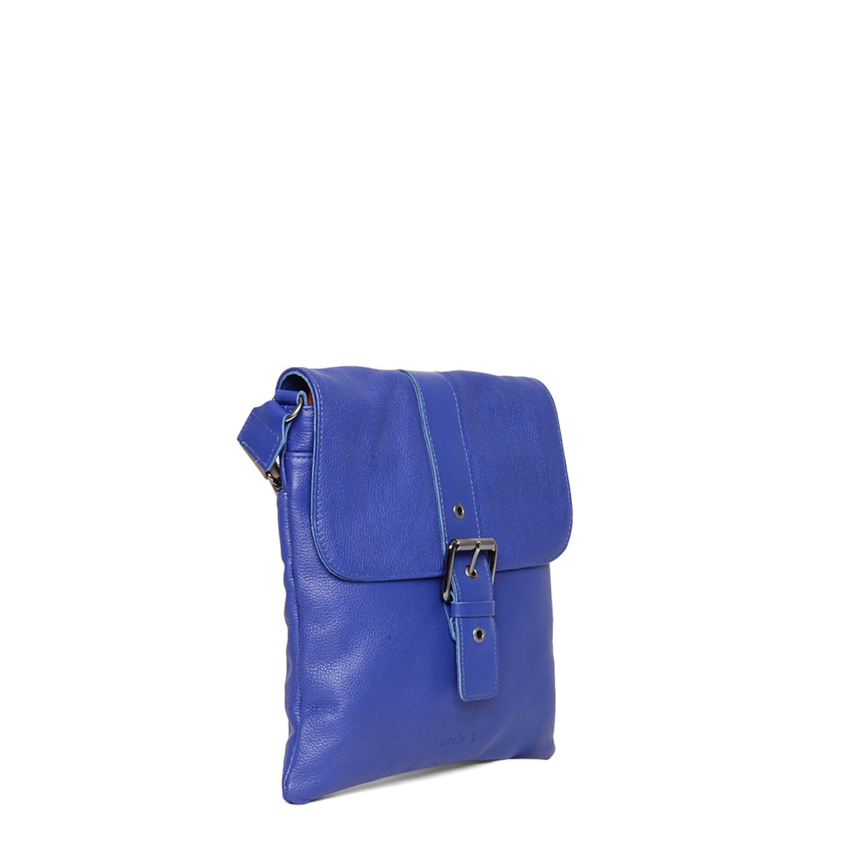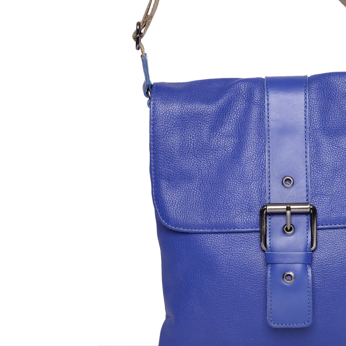 bolsa de couro detalhe em fivela frontal e alça regulável.