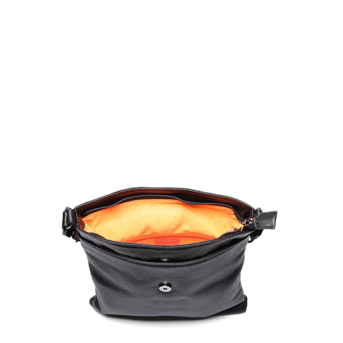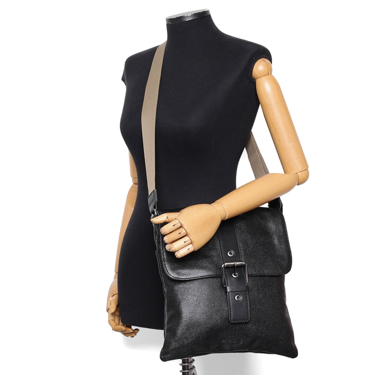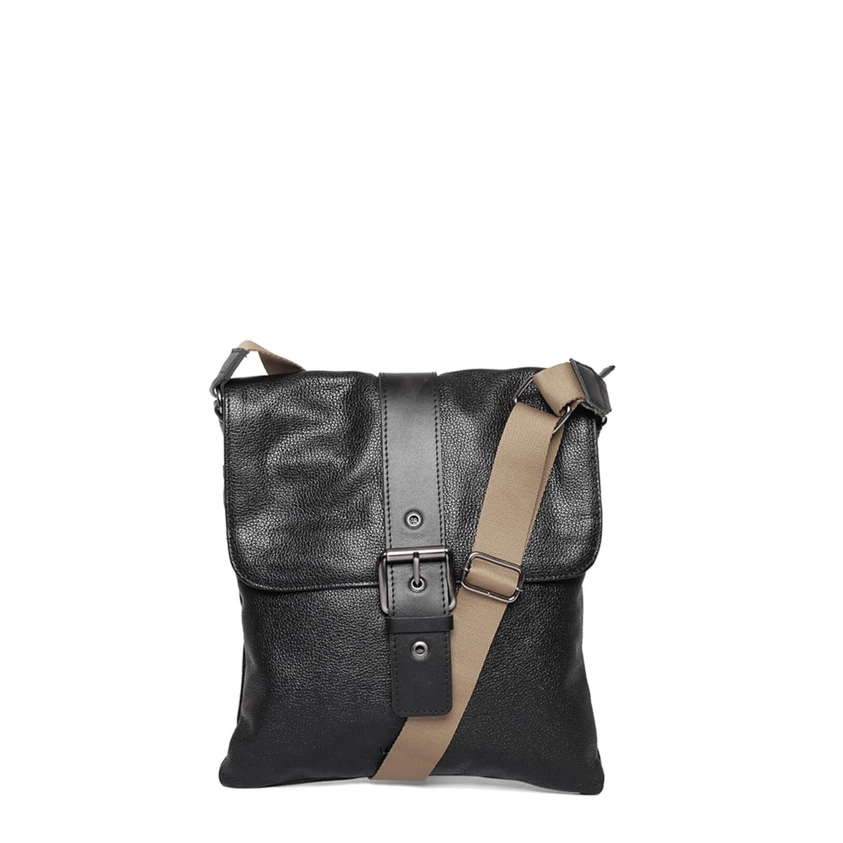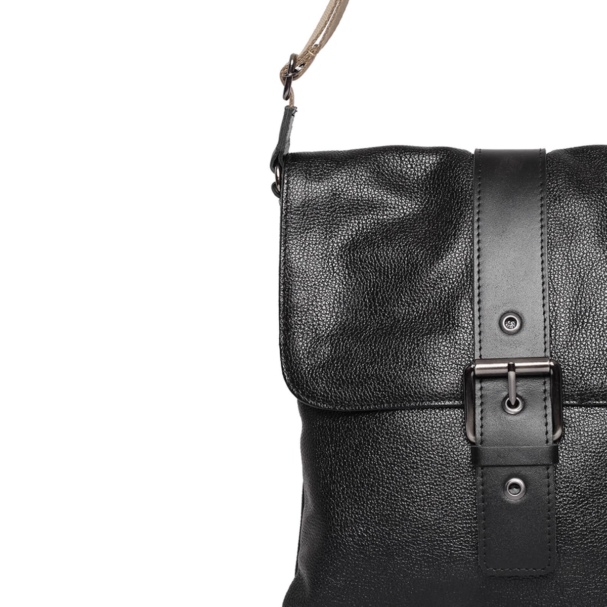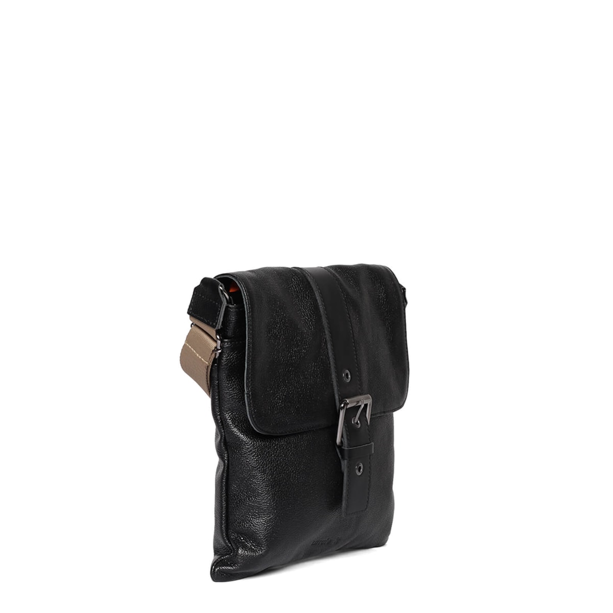 bolsa de couro detalhe em fivela frontal e alça regulável.