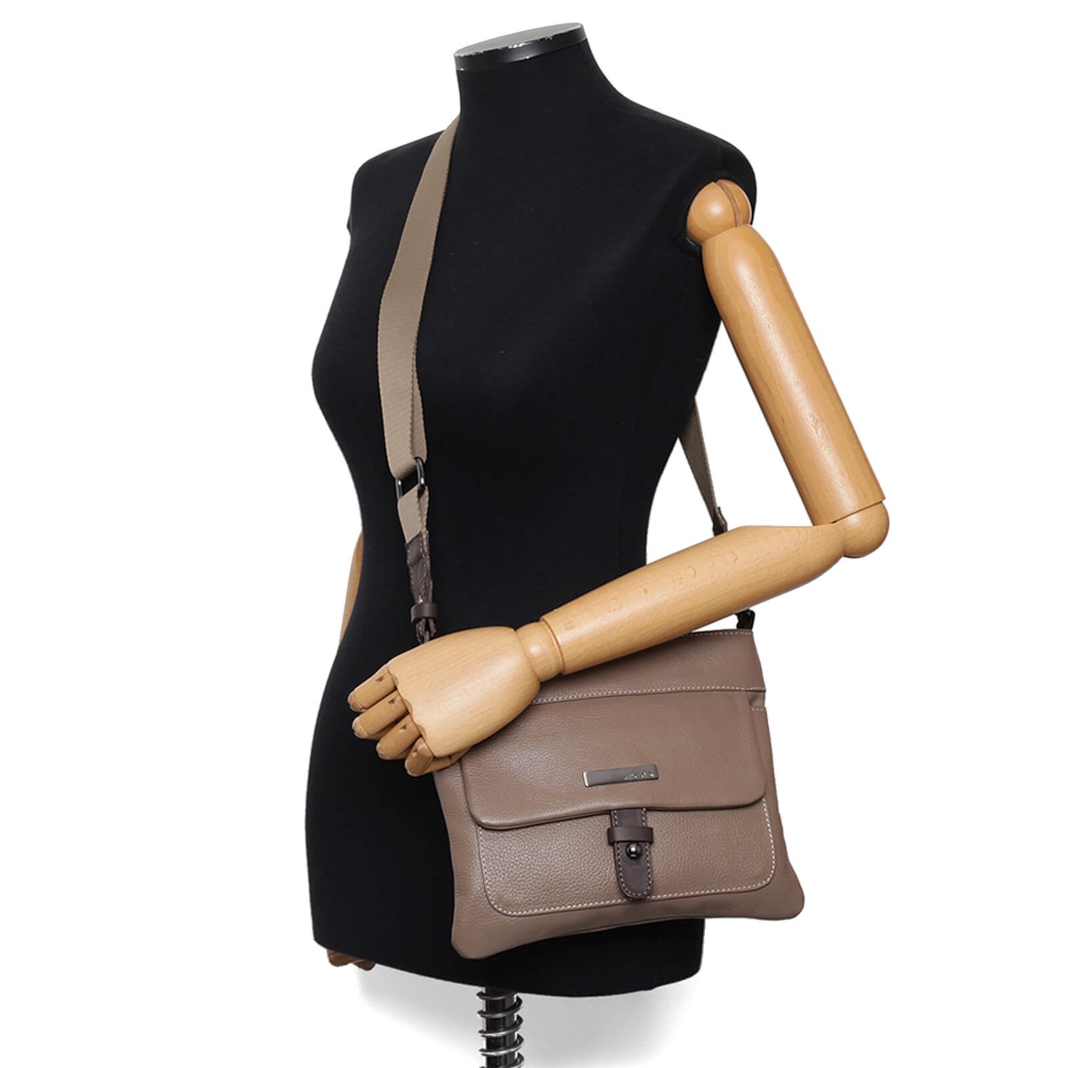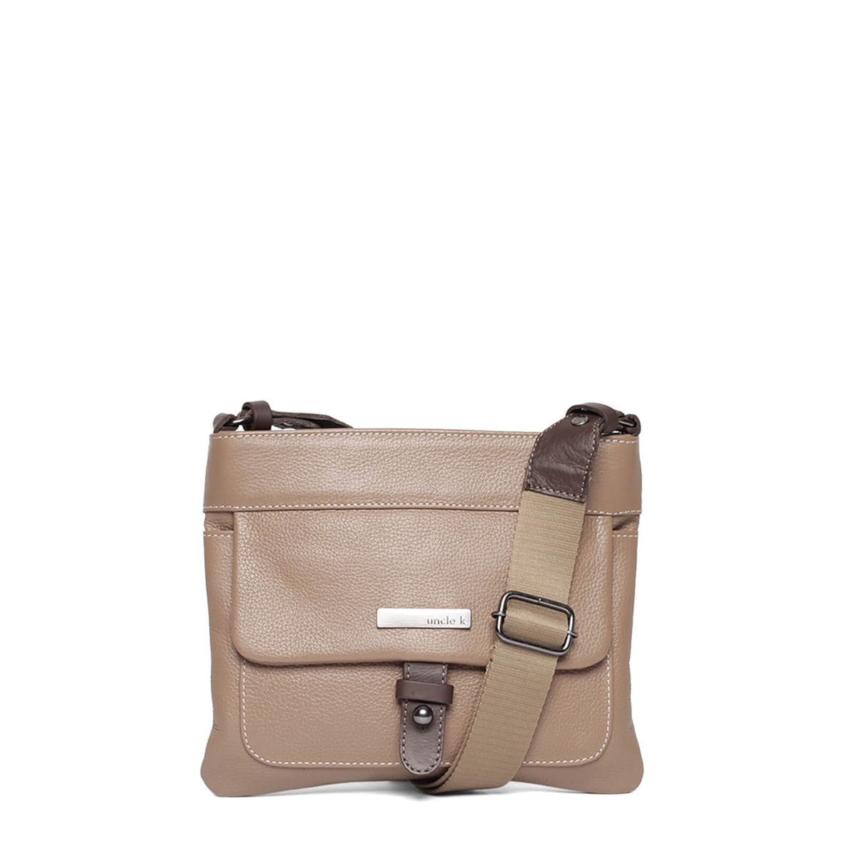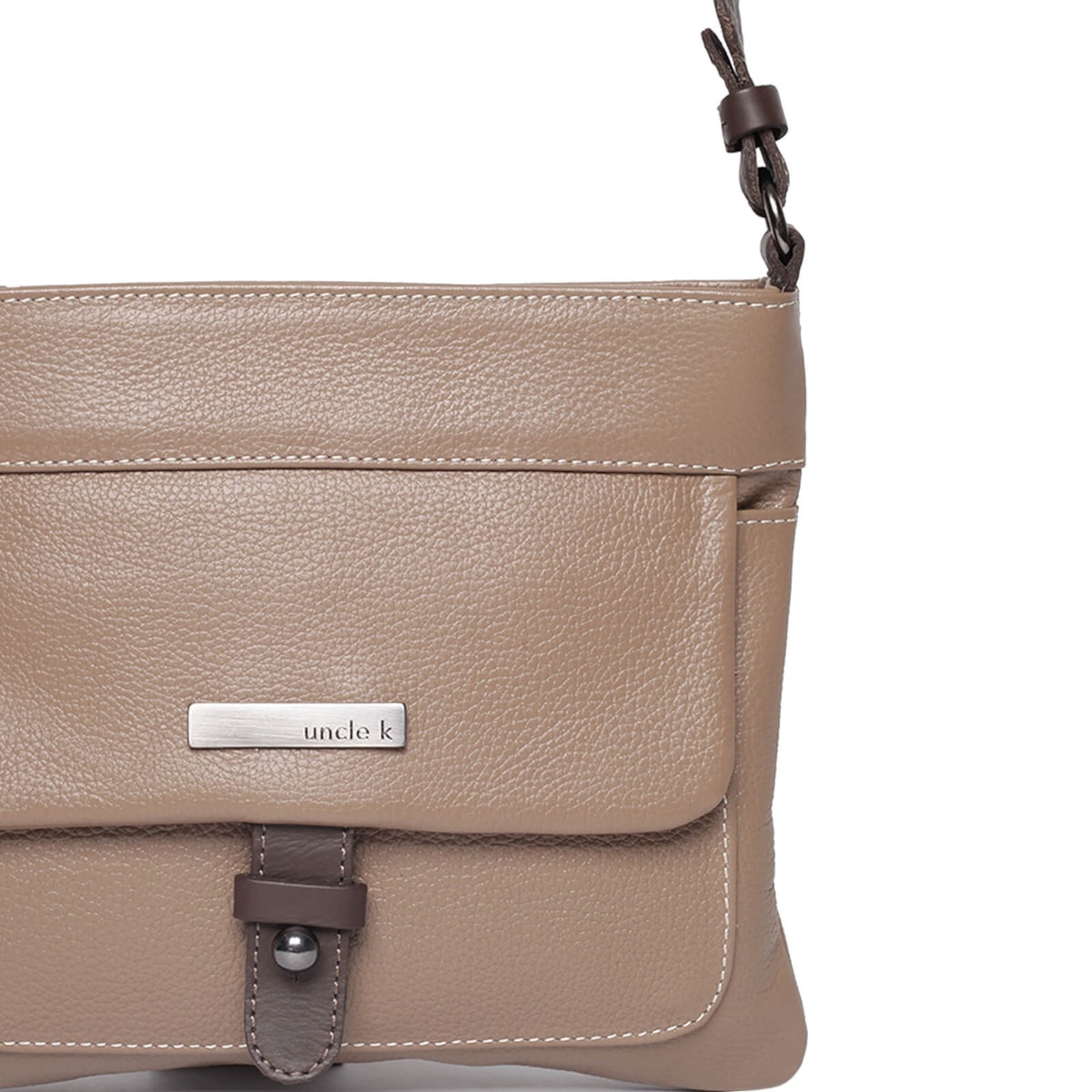 Bolsa em couro com bolso externo e interno. Fecho principal em zíper e ímã. Alça regulável.