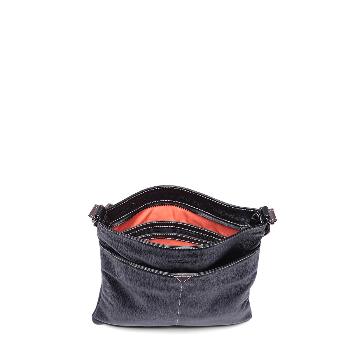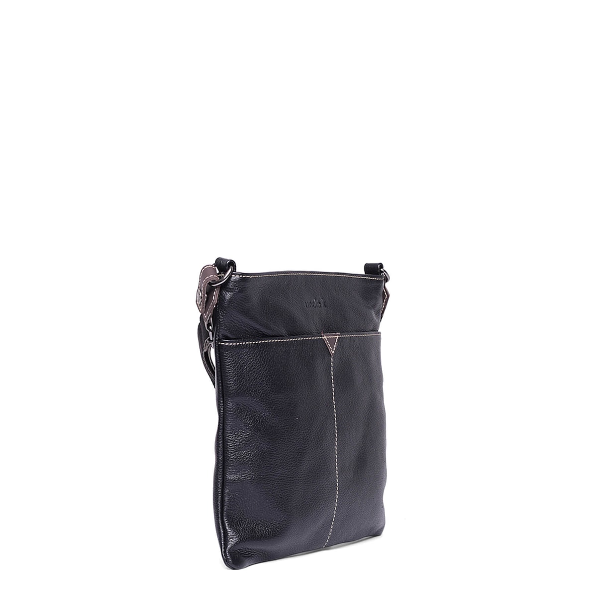 Bolsa tiracolo de couro 61176, com design prático e elegante. O fechamento principal em zíper proporciona segurança, enquanto o bolso externo oferece fácil acesso a itens essenciais. Internamente, a bolsa conta com um bolso com zíper para objetos mais delicados, dois bolsos adicionais para organização e um porta-chaves, tornando-a uma escolha funcional e estilosa para o dia a dia.