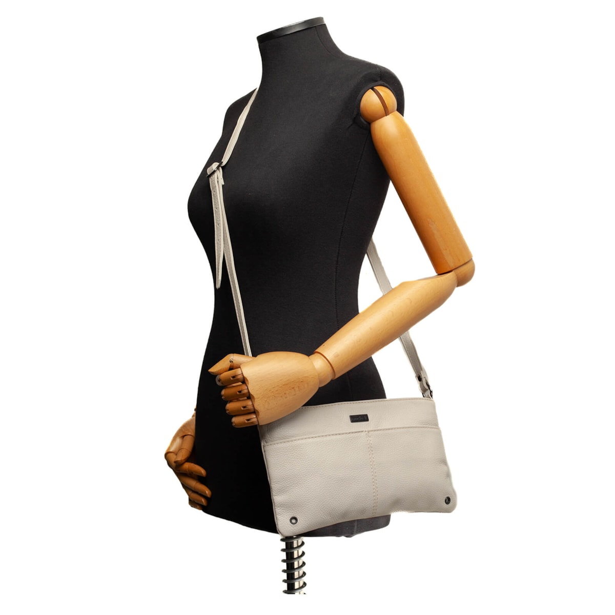 Bolsa tiracolo em couro modelo 61192 v25, de tamanho pequeno, com fechamento principal em zíper. Possui um prático bolso frontal com fechamento em botão imantado para acesso rápido. A alça de couro é ajustável através de uma fivela. Internamente, conta com um bolso com zíper para manter seus itens organizados