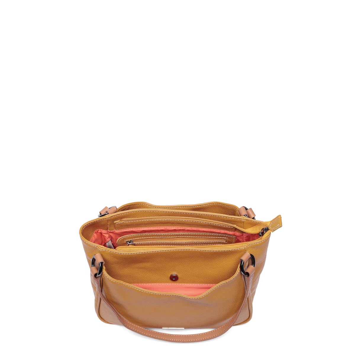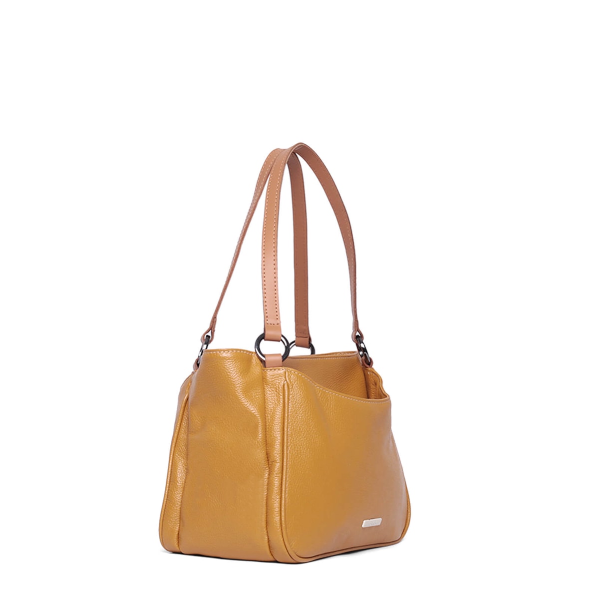 bolsa couro 61261 v25 Conta com compartimentos externos na frente e atrás, ambos com fechamento em botão imantado. A alça fixa em couro, enquanto o interior oferece um bolso com zíper e um porta-chaves. O fechamento principal em zíper proporciona segurança extra. Perfeita para o dia a dia.