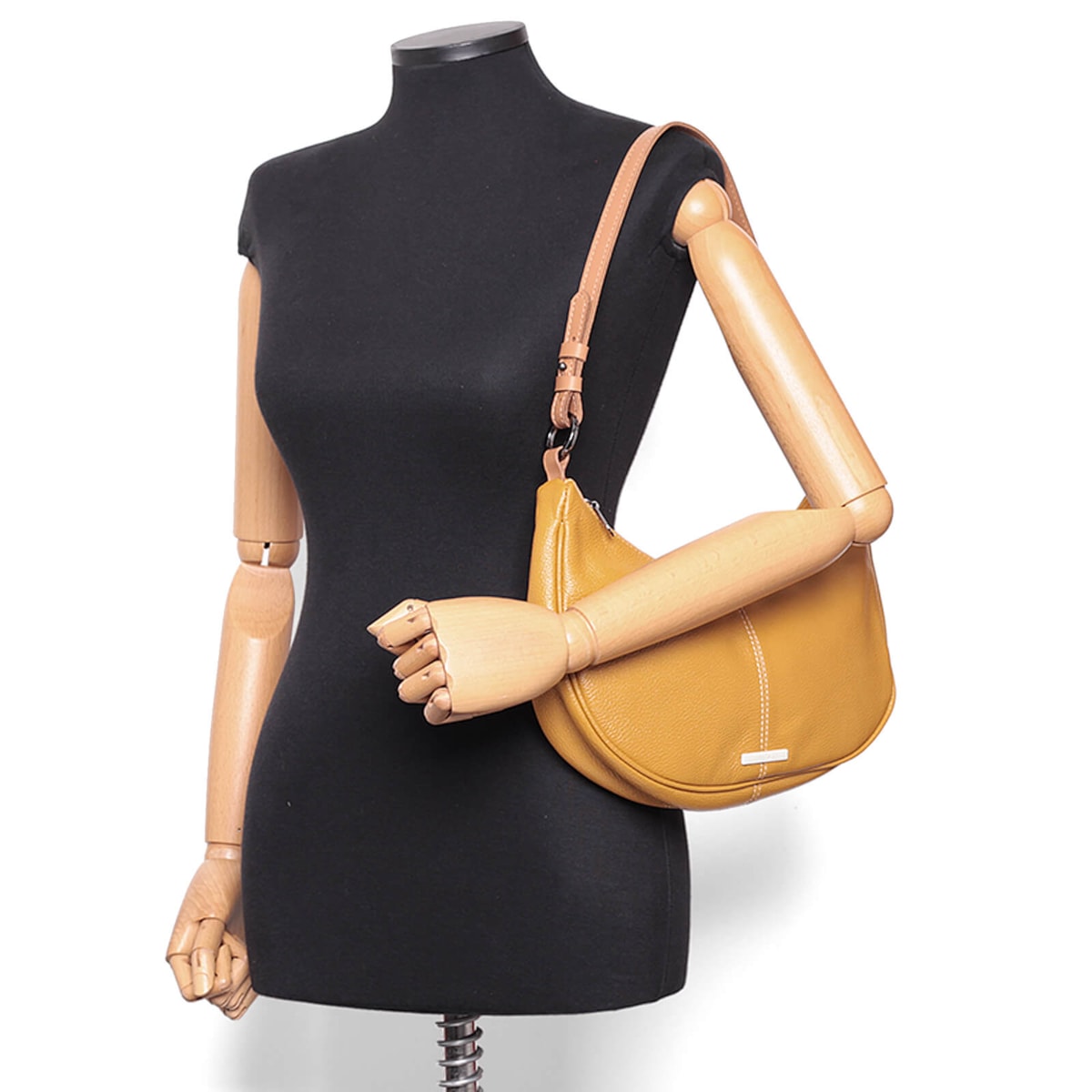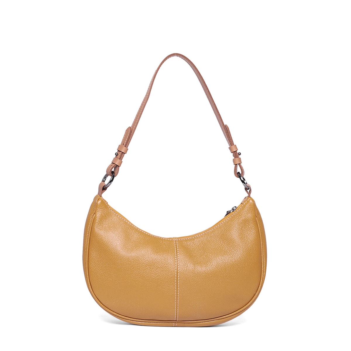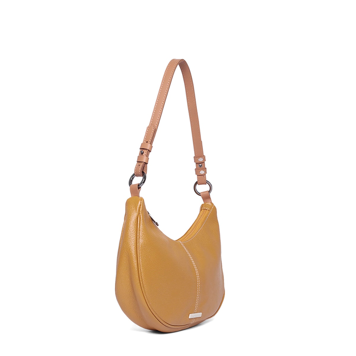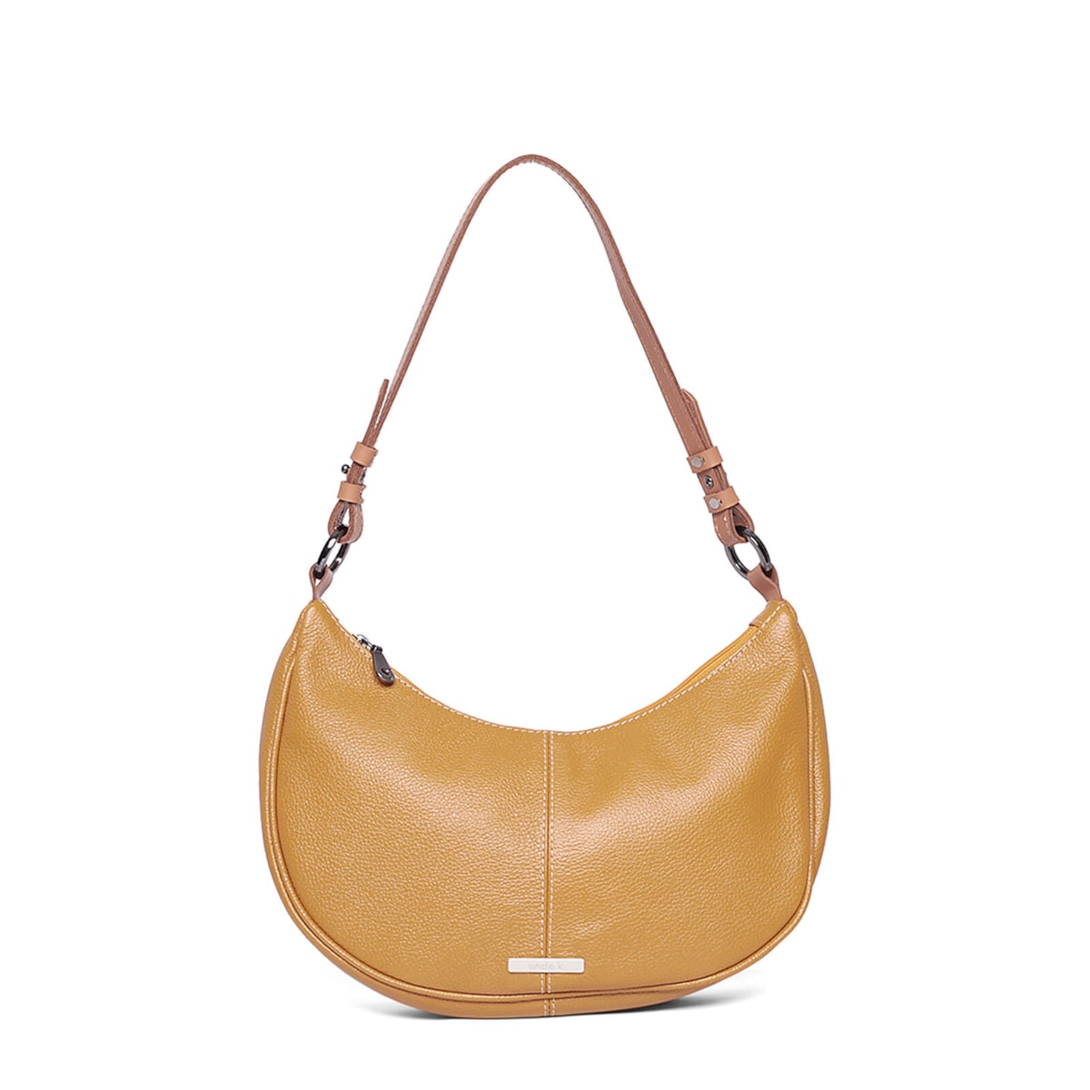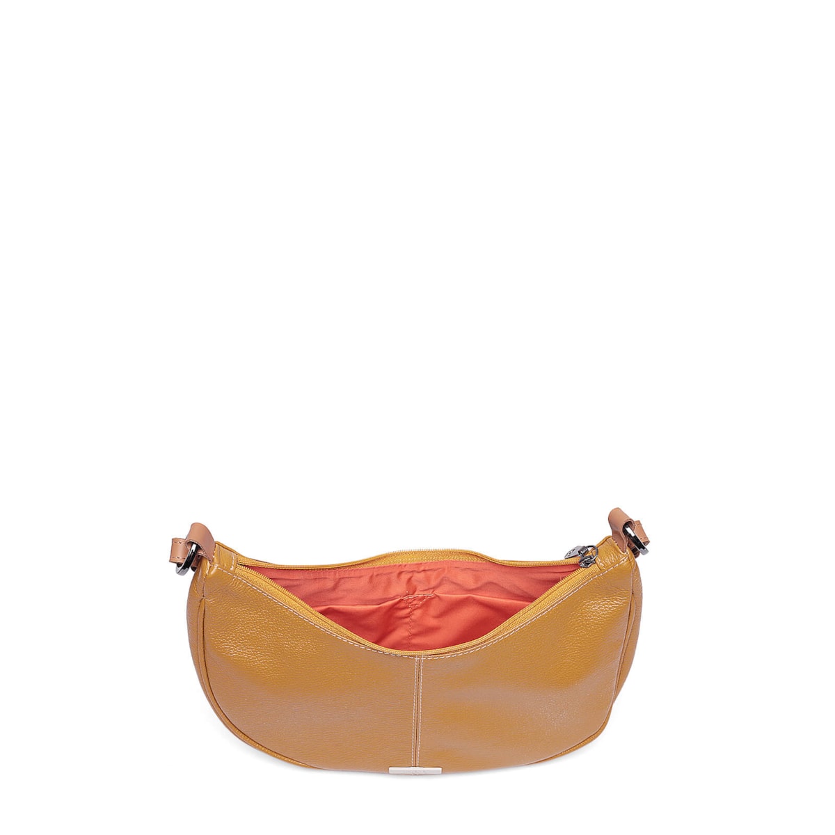 Bolsa ombro couro 61262 v25 feita de couro com design em formato meia lua. Conta com alça regulável para ajuste perfeito, fechamento em zíper para segurança, dois bolsos internos para facilitar a organização e um prático porta-chaves.