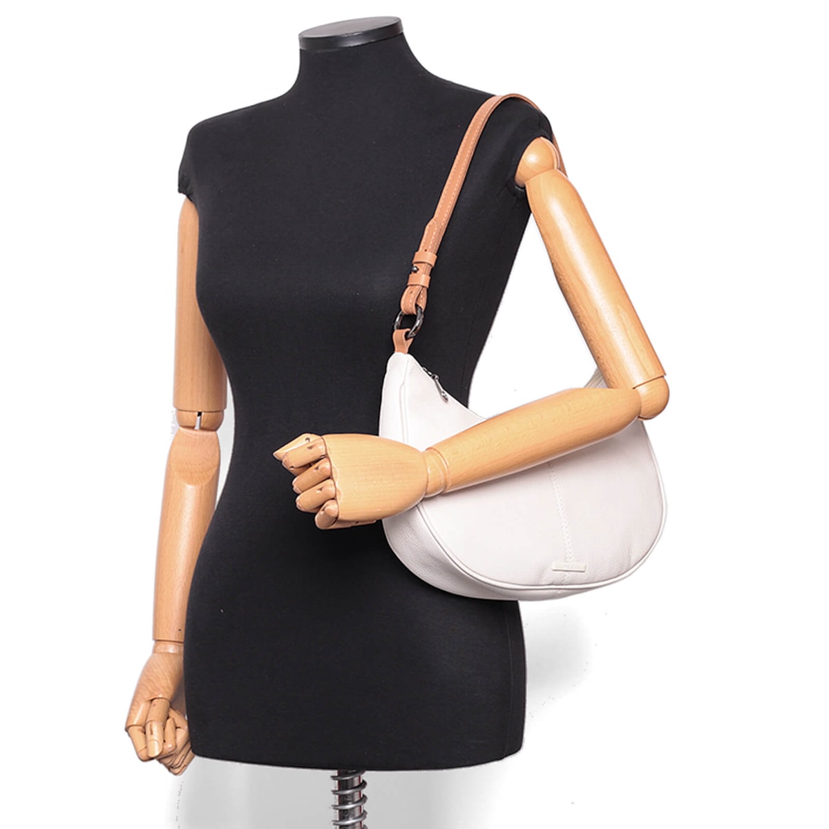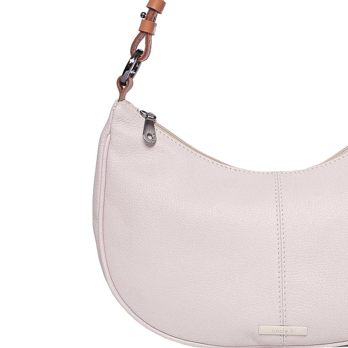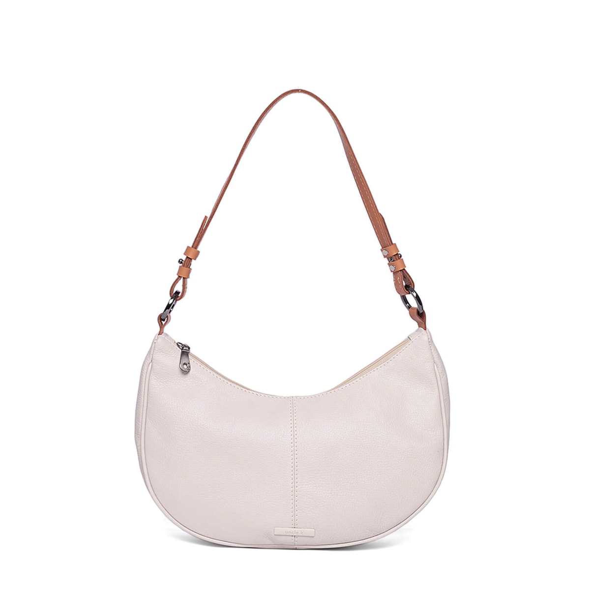 Bolsa ombro couro 61262 v25 feita de couro com design em formato meia lua. Conta com alça regulável para ajuste perfeito, fechamento em zíper para segurança, dois bolsos internos para facilitar a organização e um prático porta-chaves.