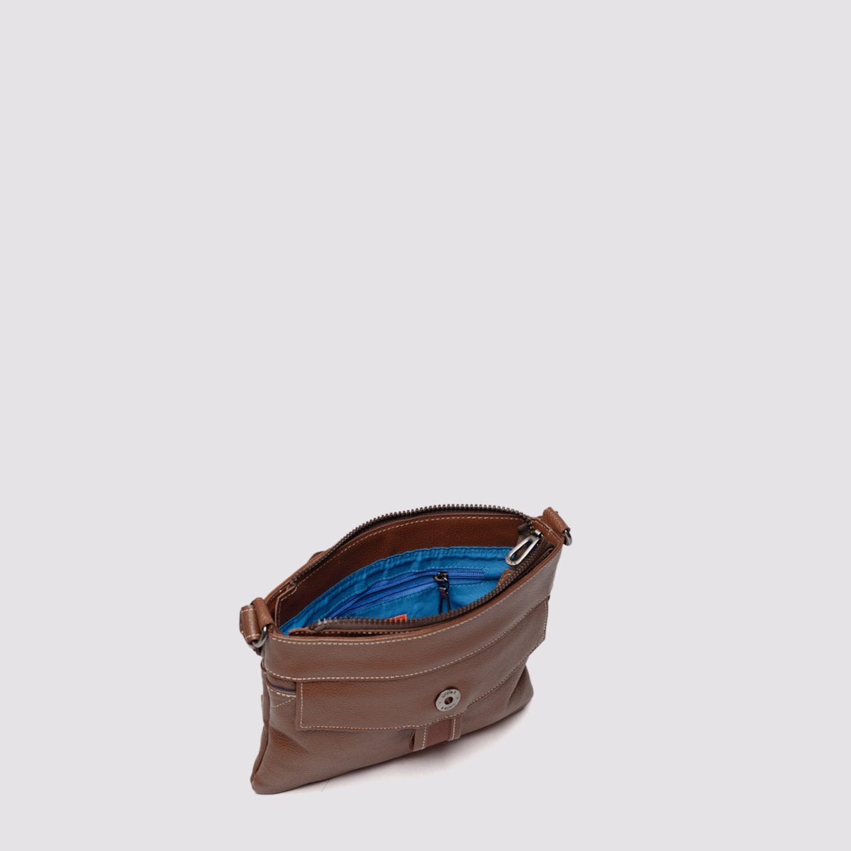 Bolsa tiracolo couro 61400 v26 A bolsa tiracolo de couro em tamanho compacto, perfeita para acompanhar a rotina com praticidade e estilo. Possui alça fixa em cadarço regulável e dois compartimentos externos – um frontal e um traseiro – que facilitam o acesso rápido aos itens do dia a dia. O fechamento principal é em zíper, garantindo segurança. Internamente, é forrada e conta com um bolso aberto, um bolso com zíper e ainda um gancho para chaves, mantendo tudo organizado em qualquer ocasião.