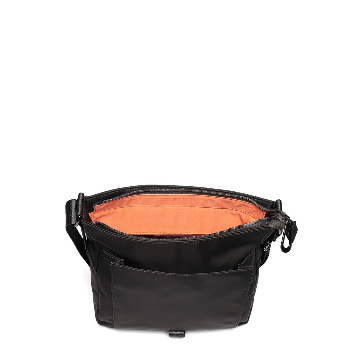 A bolsa tiracolo nylon bnt 61198 I24 é uma bolsa feita de nylon, projetada para ser usada atravessada sobre o ombro. Possui um fechamento principal com zíper. Externamente possui um bolso coberto, um fecho com engate, um bolso com zíper na parte frontal e um bolso traseiro com zíper para guardar itens de forma segura. Dentro da bolsa, há dois bolsos sem zíper, um com zíper e um porta-chaves. Além disso, vem com uma nécessaire para organizar pequenos objetos.