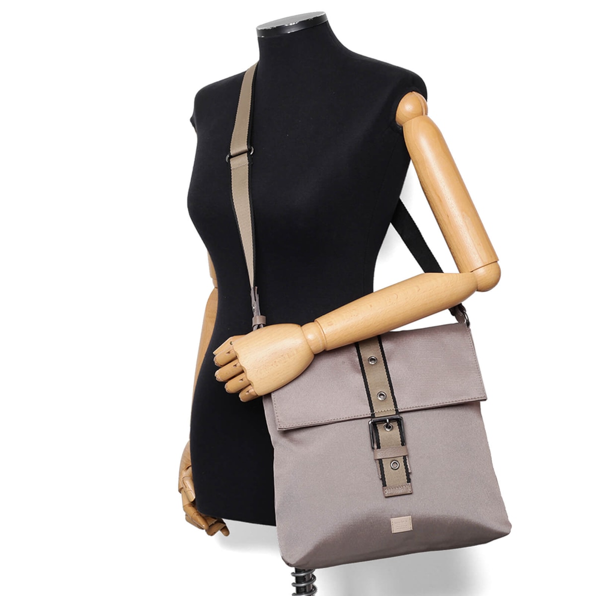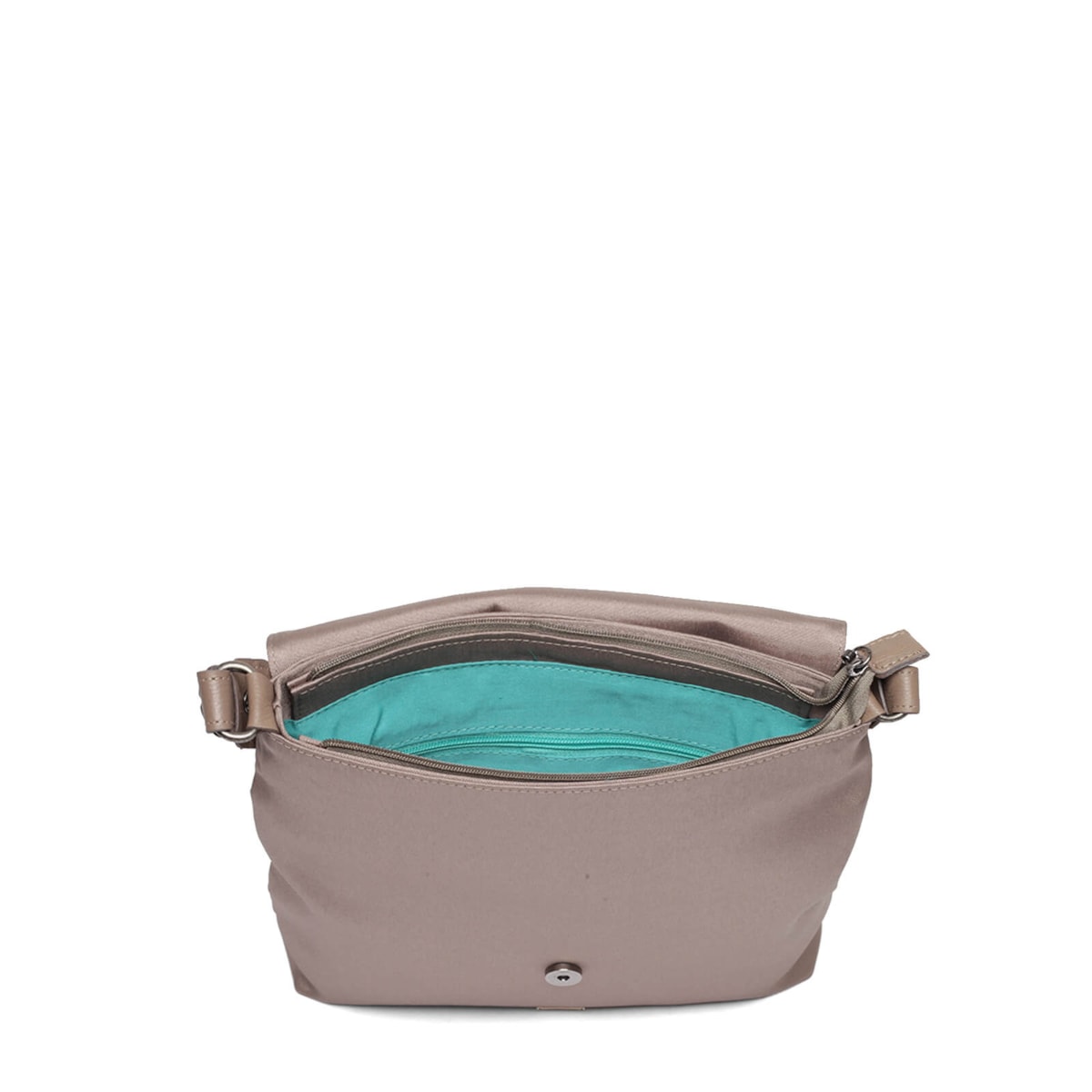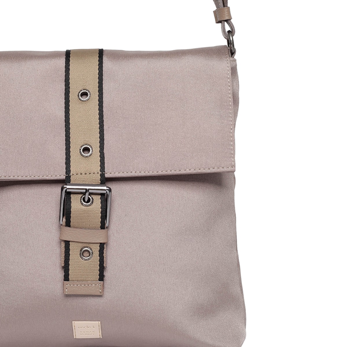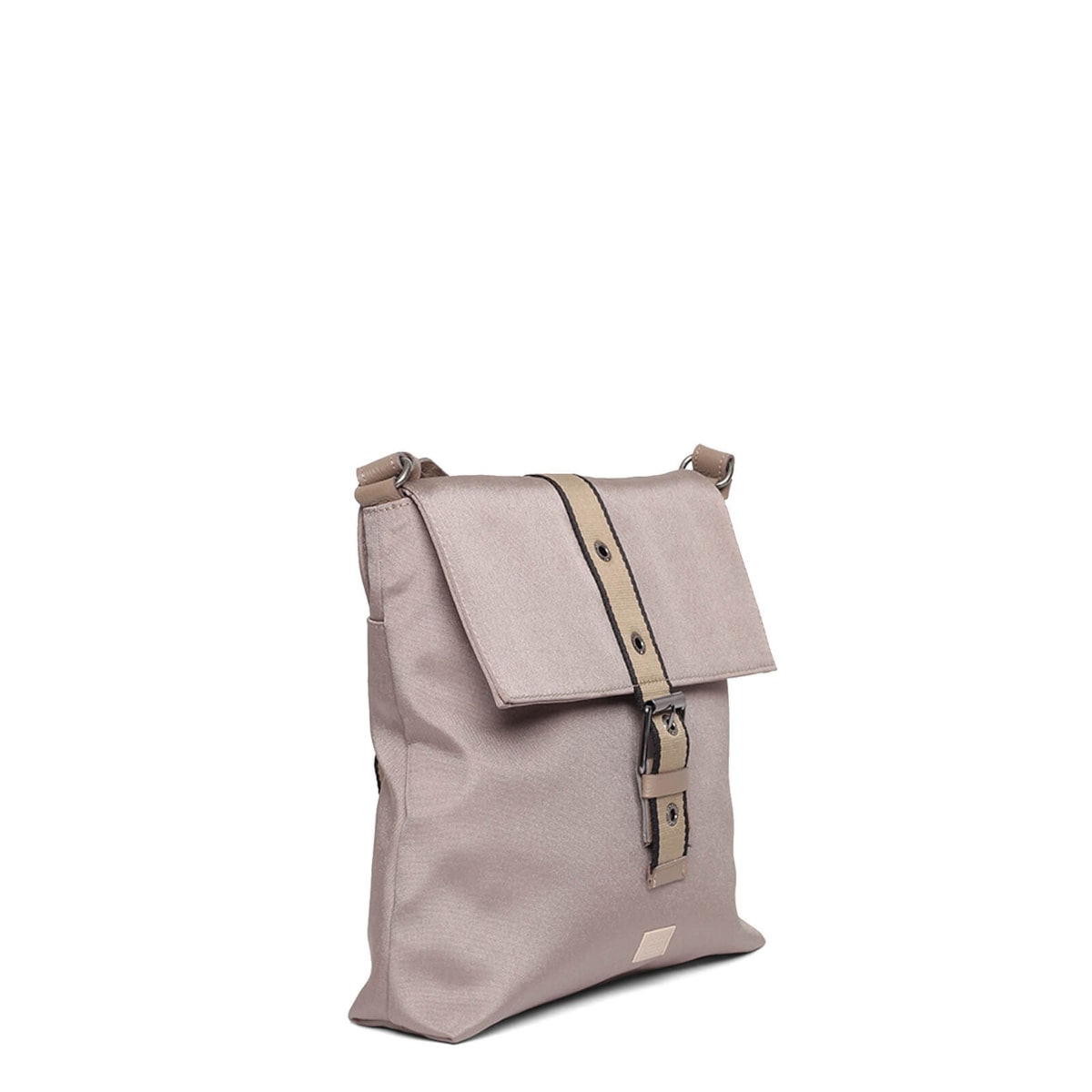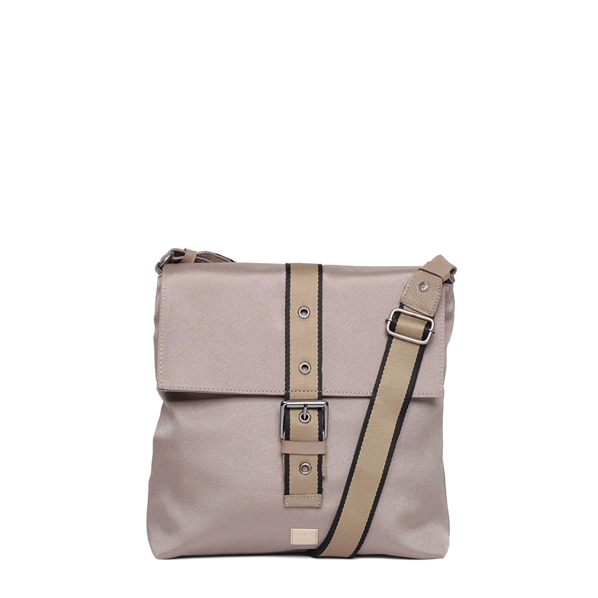Bolsa tiracolo nylon 60962 v23 com detalhe frontal em fivela, possui bolso interno.