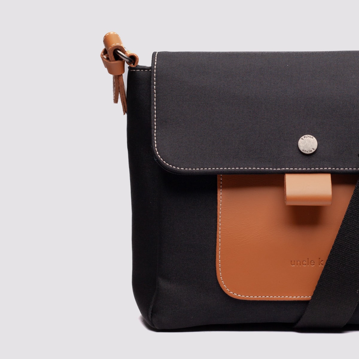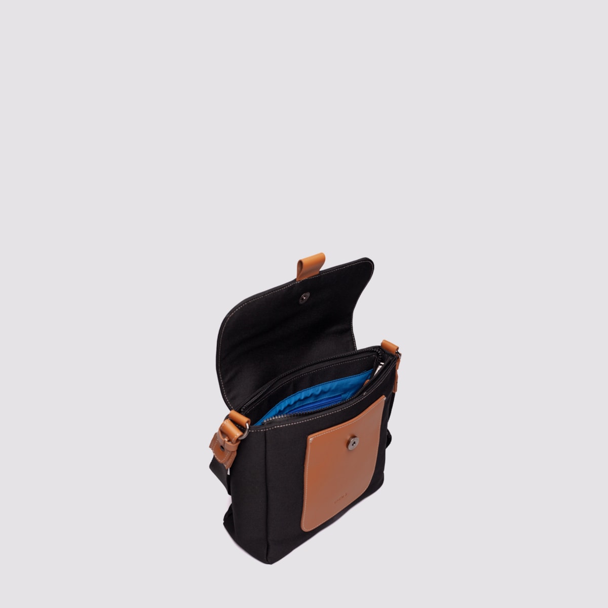 A bolsa tiracolo Nylon 61335 é confeccionada em nylon resistente, com detalhes em couro atanado para um toque sofisticado. Seu fechamento principal é em zíper, complementado por uma tampa com botão imantado para mais segurança. Conta com alça regulável para ajuste personalizado e um compartimento traseiro prático. Internamente, possui um bolso com zíper, dois bolsos abertos e um porta-chaves, garantindo organização no dia a dia.