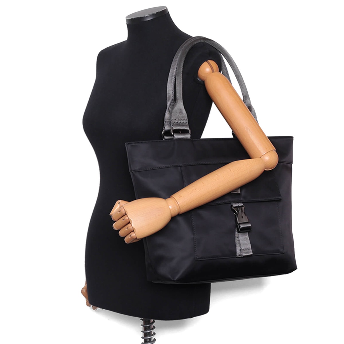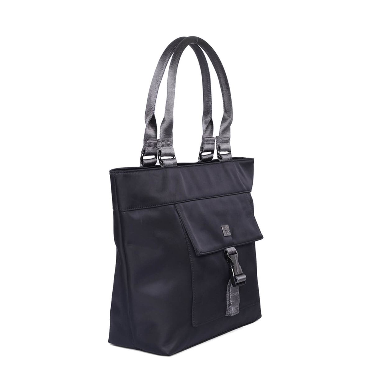 A bolsa shopping bag nylon bnt 61039 i23 possui compartimento frontal de engate e compartimento traseiro com fecho em zíper. Além disso, possui dois compartimentos internos e nécessaire removível.