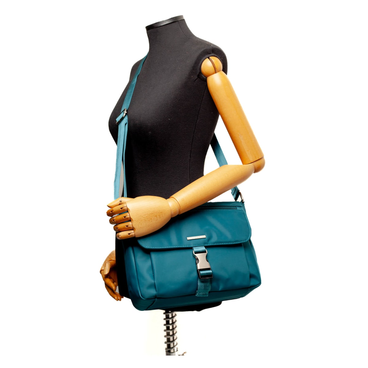 bolsa nylon bnt 61231 v25 é uma bolsa feita de nylon, projetada para ser usada atravessada sobre o ombro. Possui um fechamento principal com zíper. Externamente possui um bolso coberto, um fecho com engate, um bolso com zíper na parte frontal e um bolso traseiro com zíper para guardar itens de forma segura. Dentro da bolsa, há dois bolsos sem zíper, um com zíper e um porta-chaves. Além disso, vem com uma nécessaire para organizar pequenos objetos.