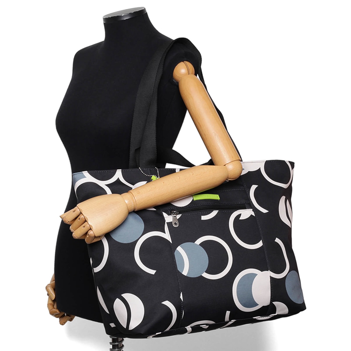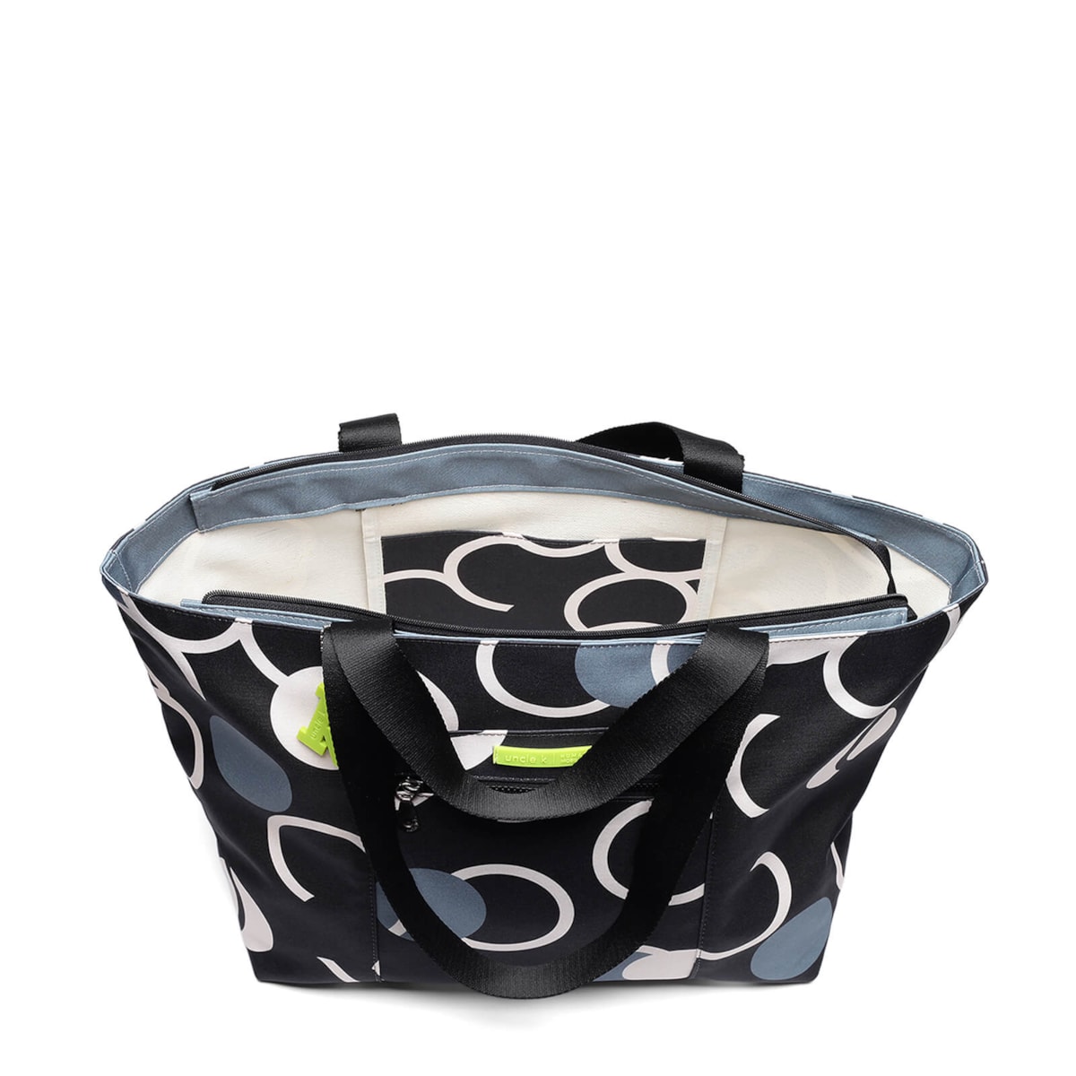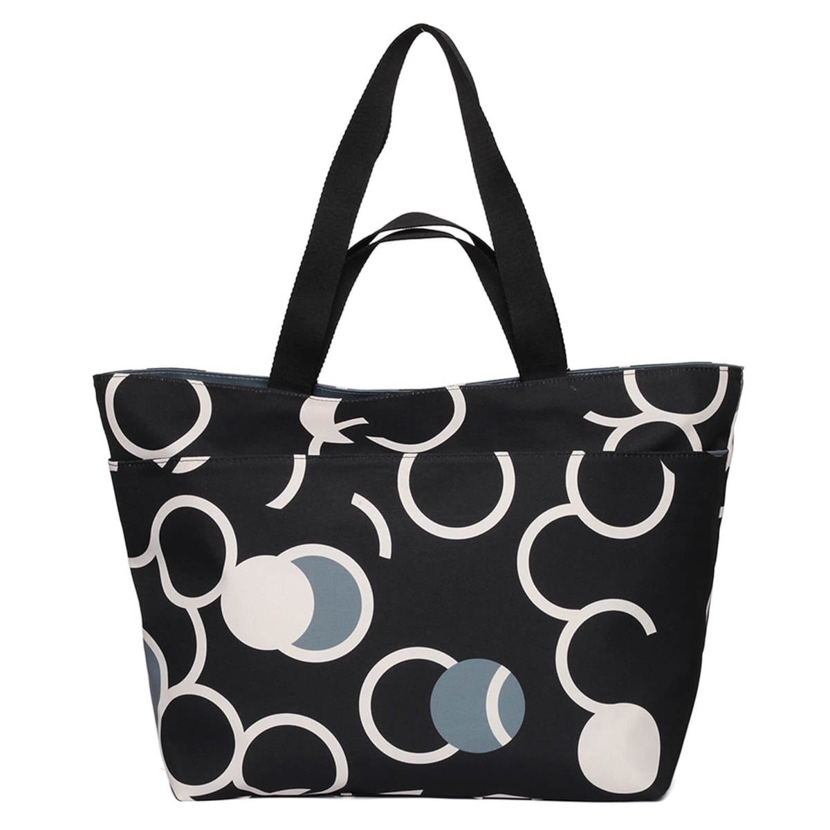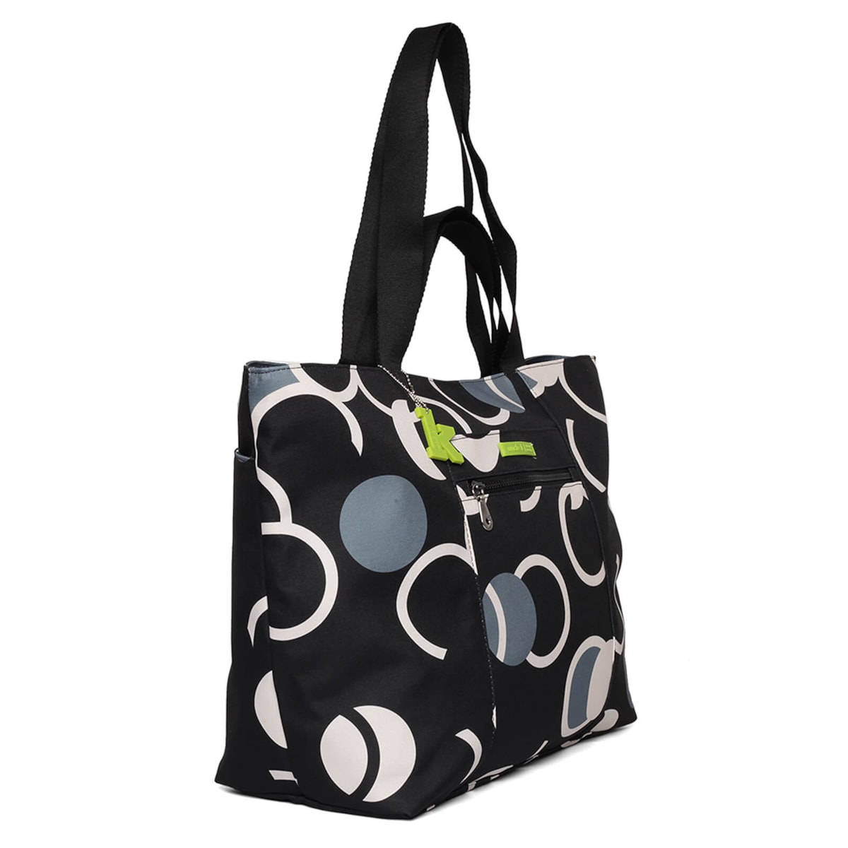 bolsa de nylon estampada bubble grande, possui bolsos internos e externos, alça de mão e de ombro.