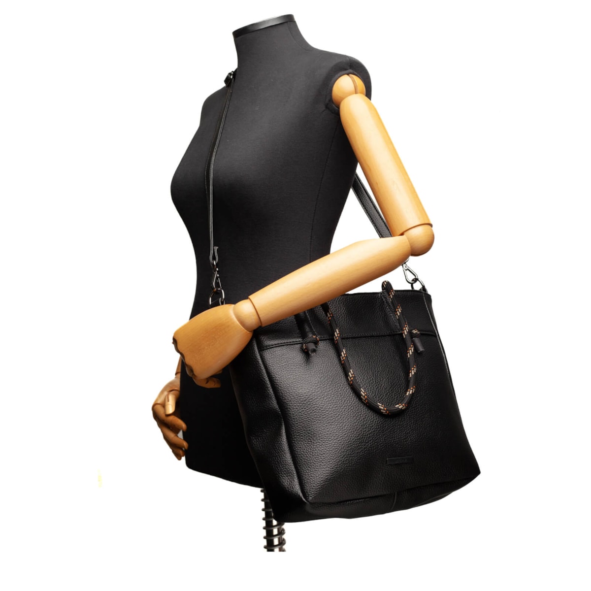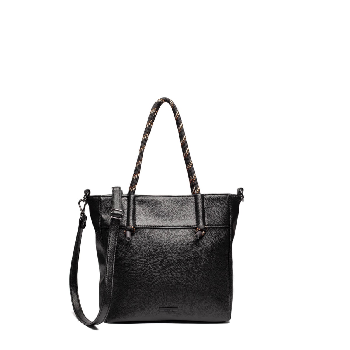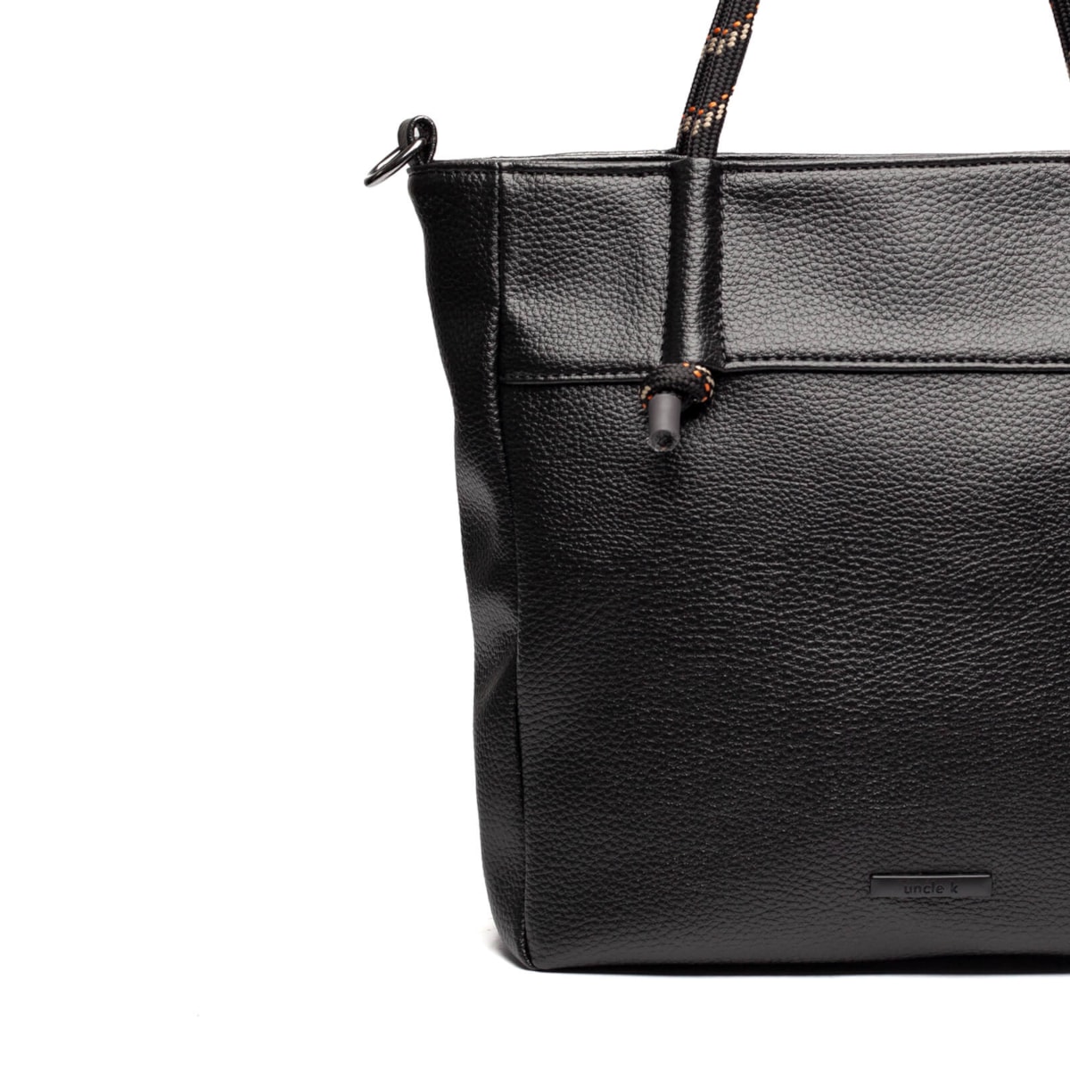 É uma opção prática e cheia de estilo para o dia a dia. De tamanho médio, é confeccionada em material sintético (PU) com acabamento leve e estruturado. Possui duas alças: uma de corda, fixa, ideal para uso no ombro com visual despojado, e outra em PU, regulável e removível, que permite o uso como tiracolo, se adaptando a diferentes ocasiões. O fechamento principal é em zíper, garantindo segurança e fácil acesso ao conteúdo. Internamente, a bolsa é toda forrada e conta com três divisões funcionais: um bolso com zíper e dois bolsos abertos, perfeitos para manter seus itens essenciais sempre organizados.