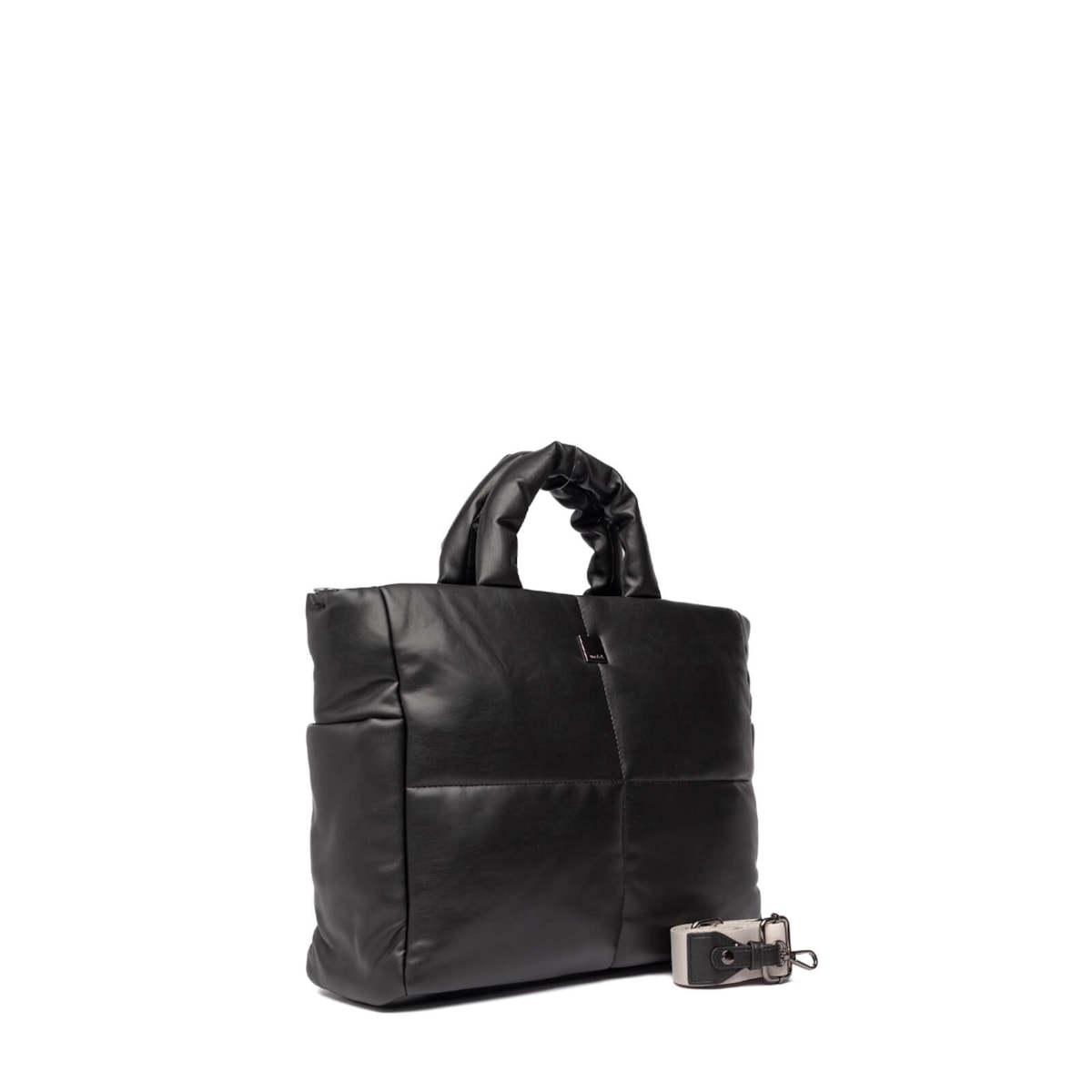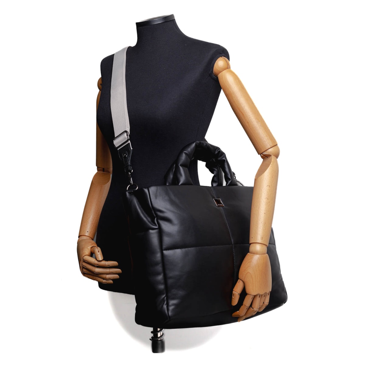 Bolsa multiuso 61226 v25 em tamanho grande, feita em pu soft extra macio, proporcionando um toque extremamente suave. Ela possui um design acolchoado, com uma alça curta acolchoada e uma alça longa removível em tecido contrastante, tornando-a prática e versátil para diferentes estilos de uso.