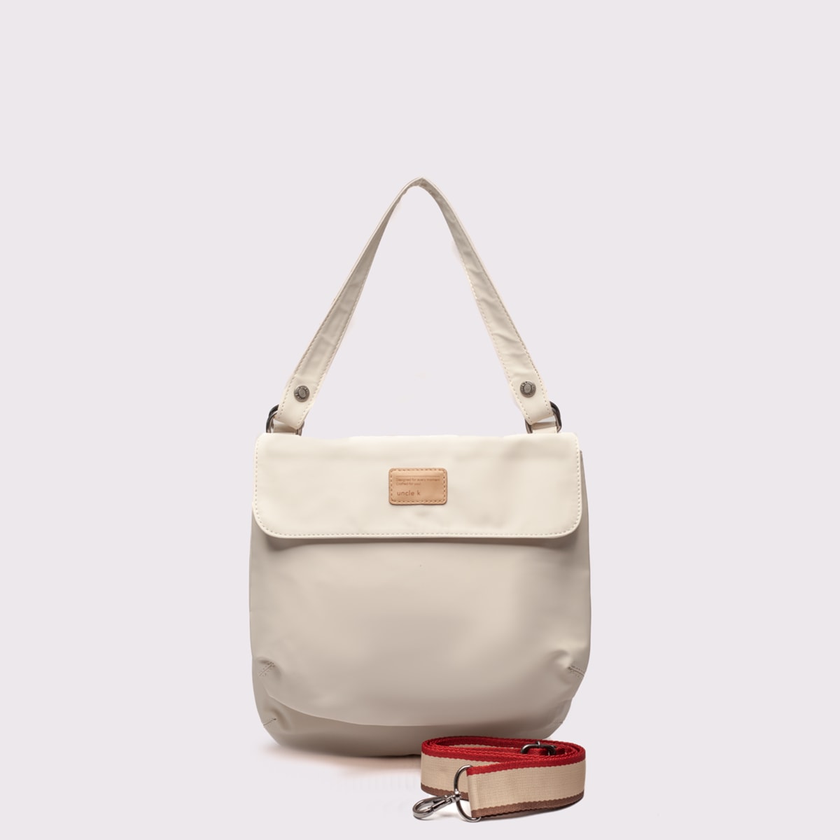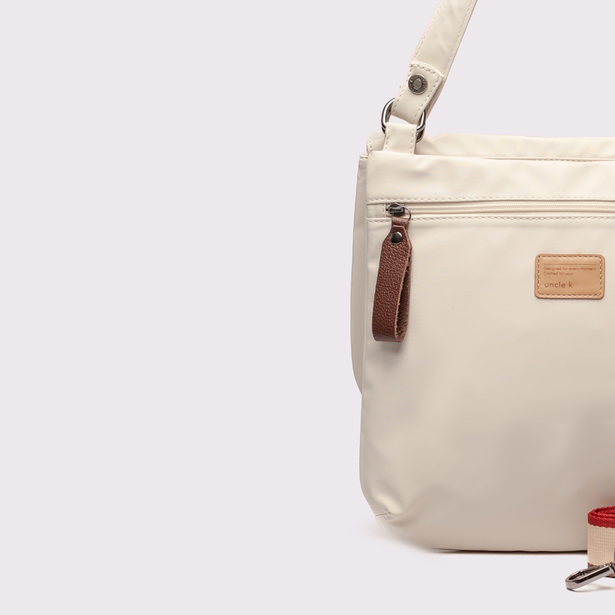 ? Alça tiracolo em cadarço exclusivo Uncle K, regulável, garantindo conforto e ajuste perfeito.