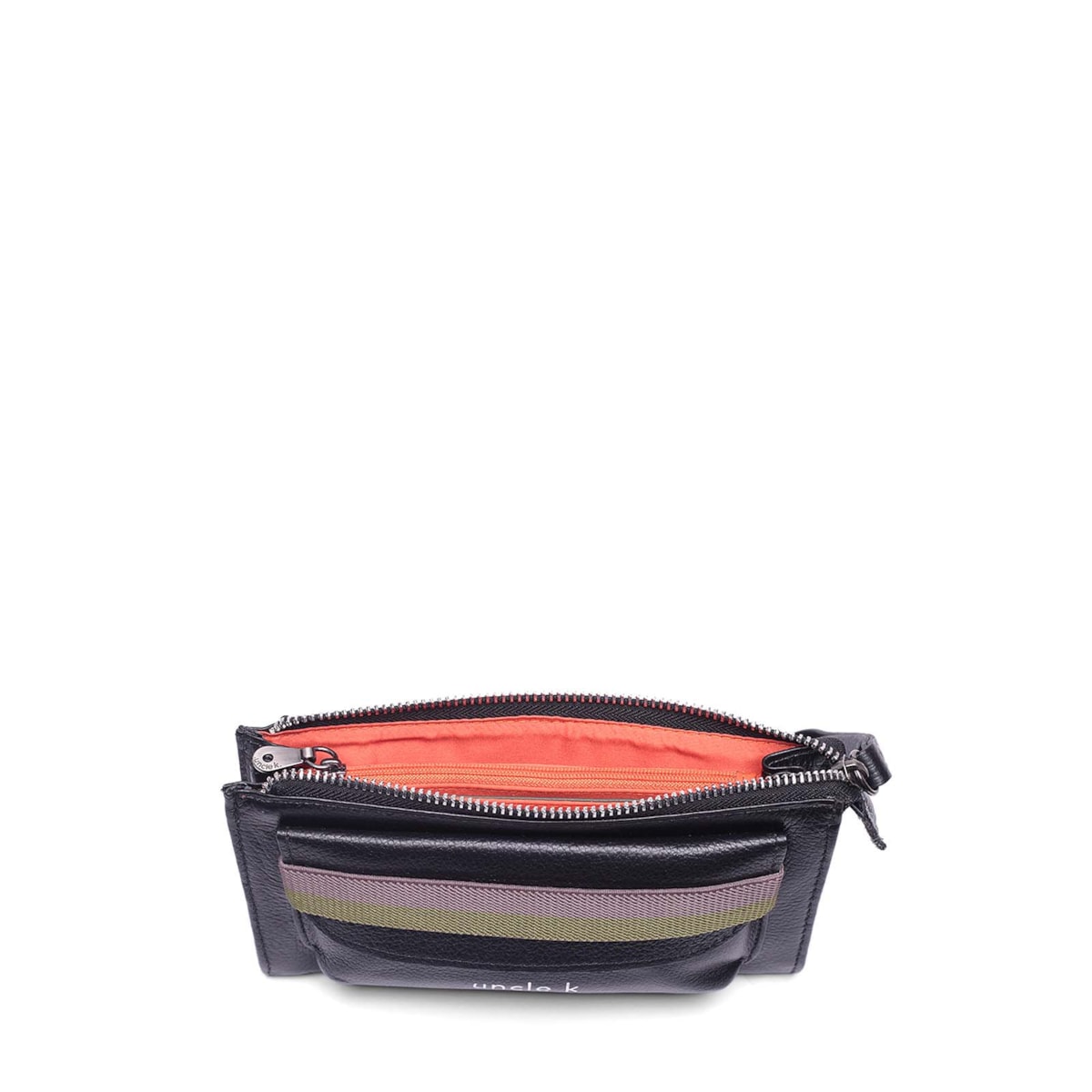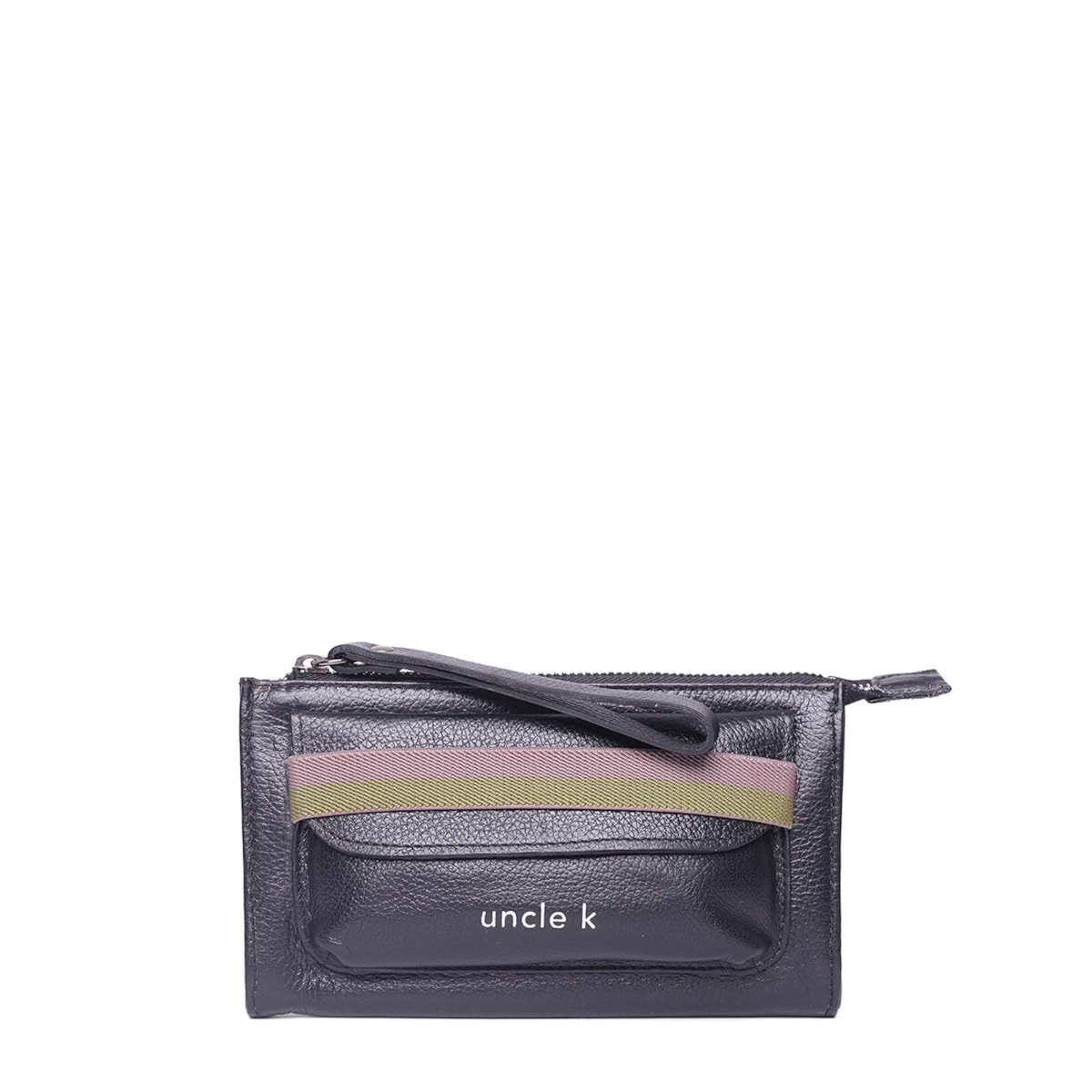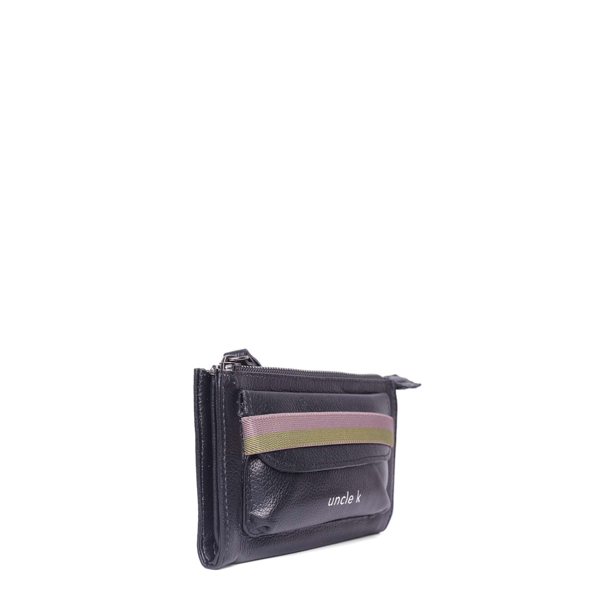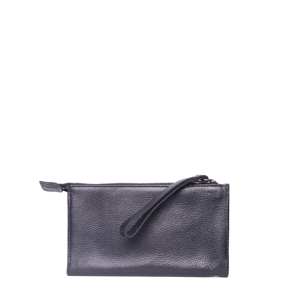 A bolsinha de mão couro 70446 i23 possui um bolso frontal para acesso rápido a itens com elástico para fechamento. No interior, conta com três divisões com compartimento para cartão em ambos os lados e compartimento principal em zíper.