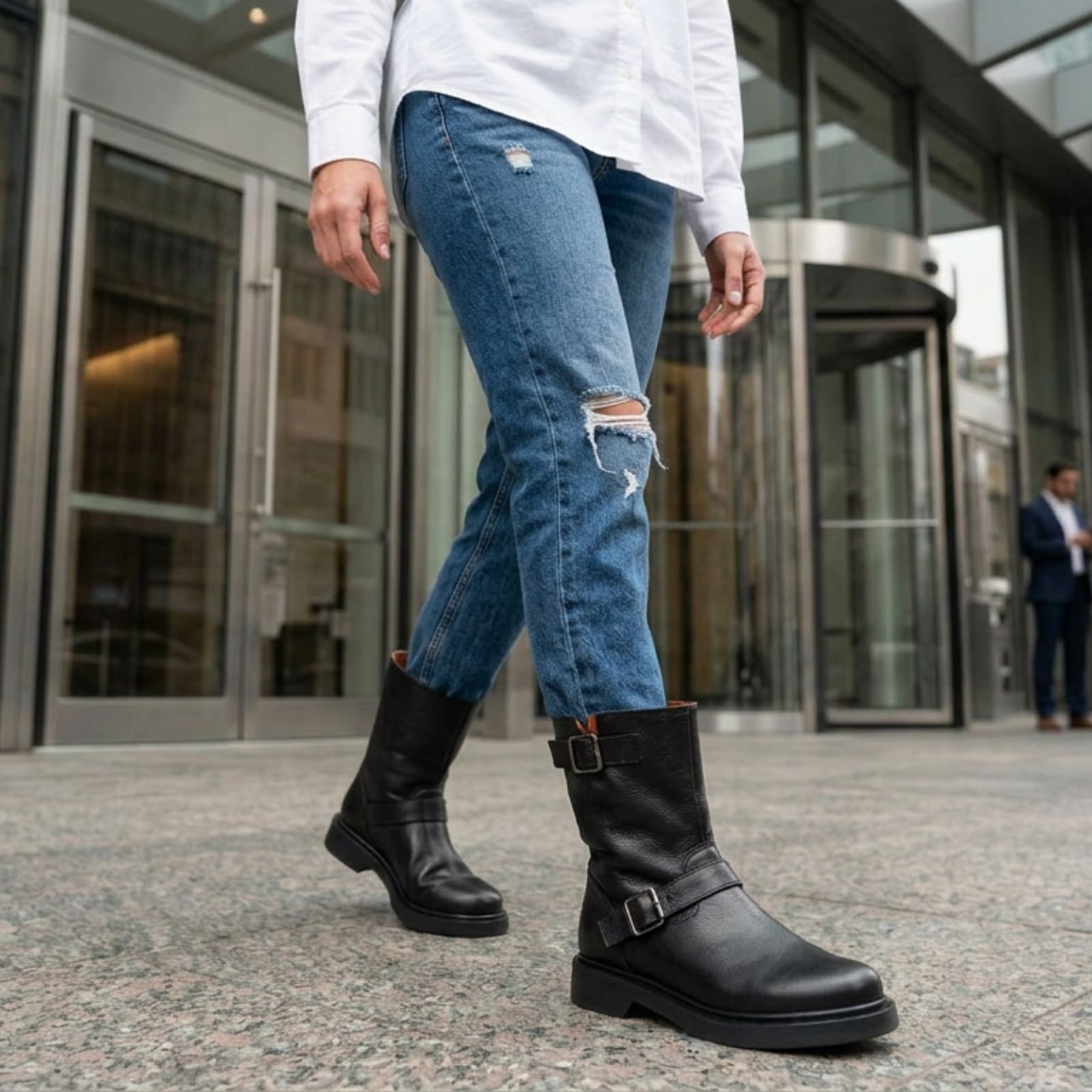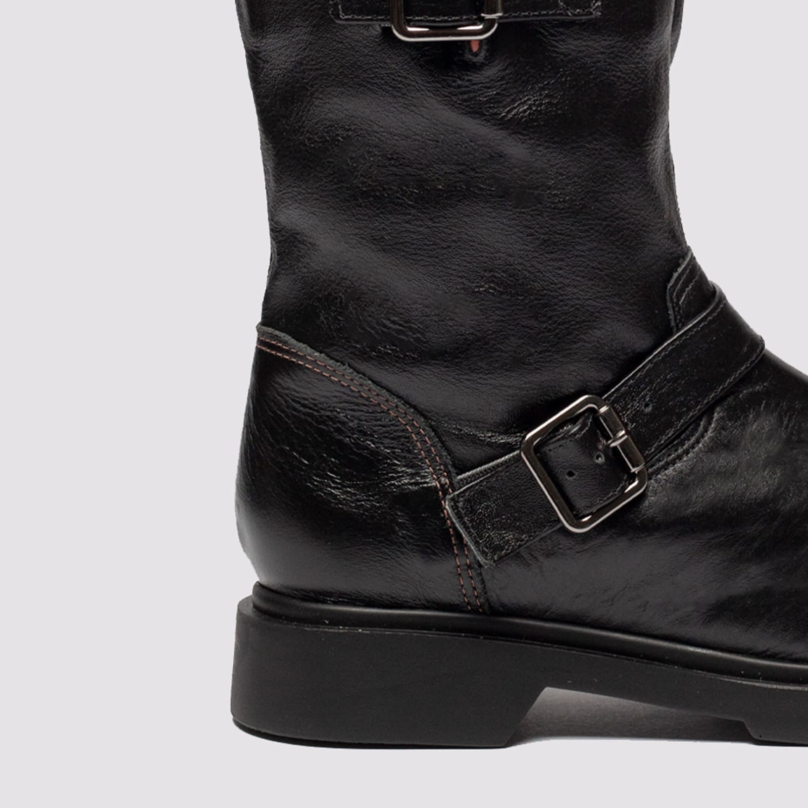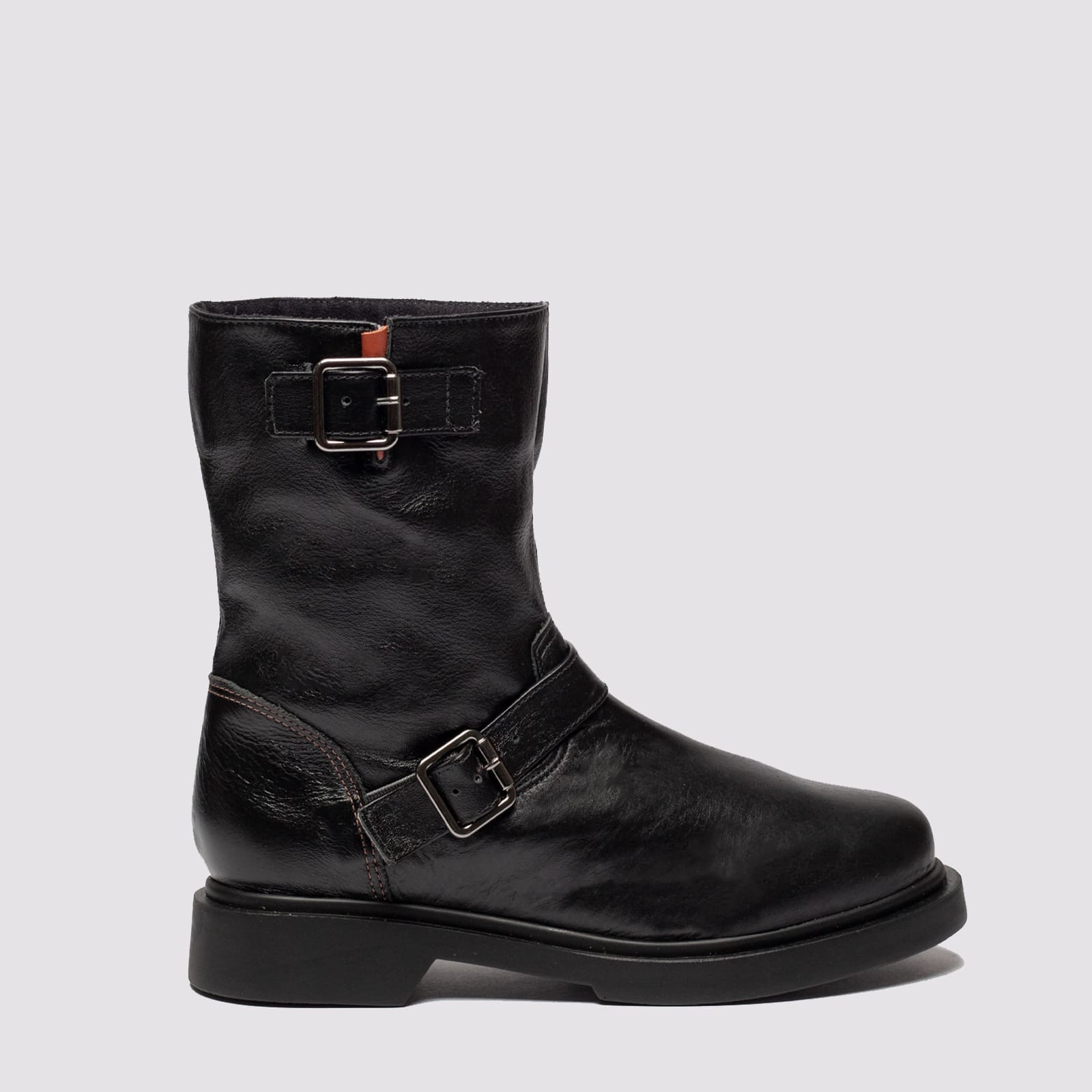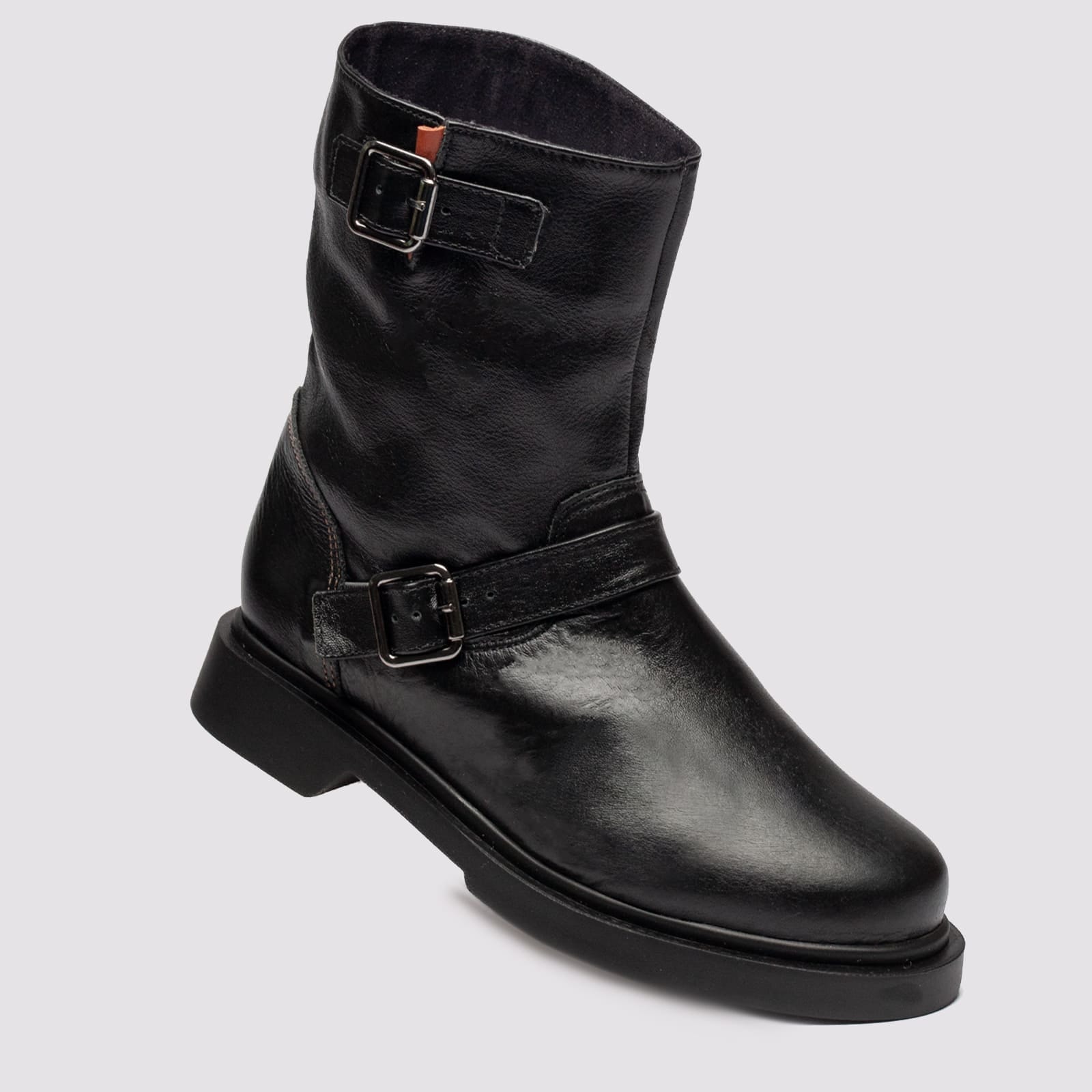 Combine resistência e estilo urbano com a nossa Bota Biker Cano Médio em Couro. Com um design robusto e acabamento impecável, este modelo destaca-se pelo detalhe das fivelas laterais, que conferem um ar moderno e levemente audacioso à peça, além de permitirem regular o fechamento da bota. Confeccionada em couro de alta qualidade, ela é a escolha ideal para quem não abre mão do conforto em produções cheias de personalidade.