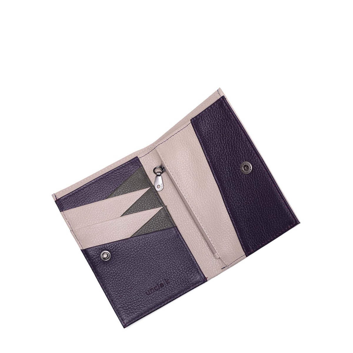 A carteira couro 70457 i23 possui fechamento em botão e conta com compartimento em zíper e conta com diversos espaços para cartões.