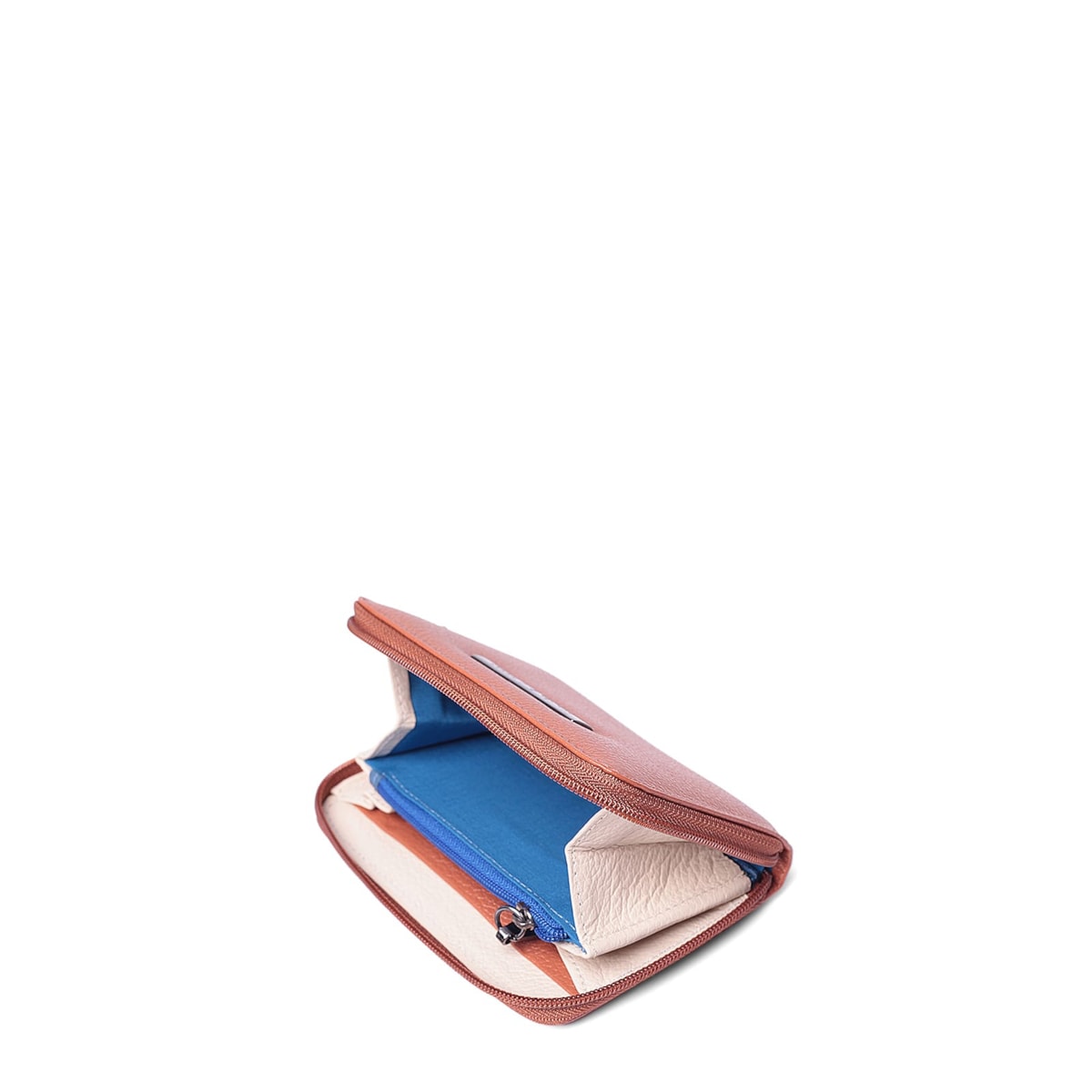 A carteira couro 70512 v24 conta com fecho principal em zíper e compartimento interno específico para moedas.