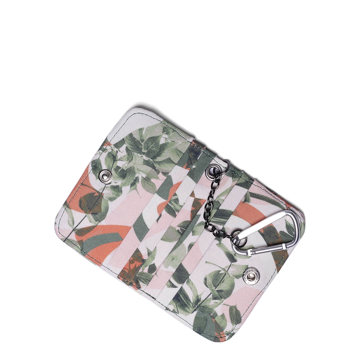 Chaveiro porta cartão em nylon estampado floral.