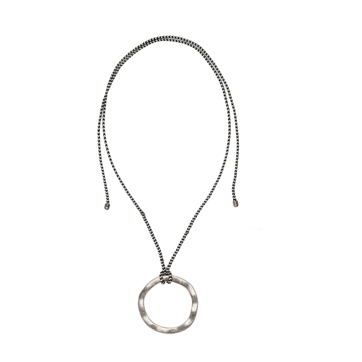 O colar metal/corda cv25n apresenta um design minimalista, composto por uma corrente em corda ajustável e um pingente circular em metal com acabamento em ouro velho e prata velha. O estilo rústico e versátil faz com que ele seja ideal para complementar looks casuais ou modernos. O metal confere um tom envelhecido e elegante, harmonizando bem com diferentes estilos.