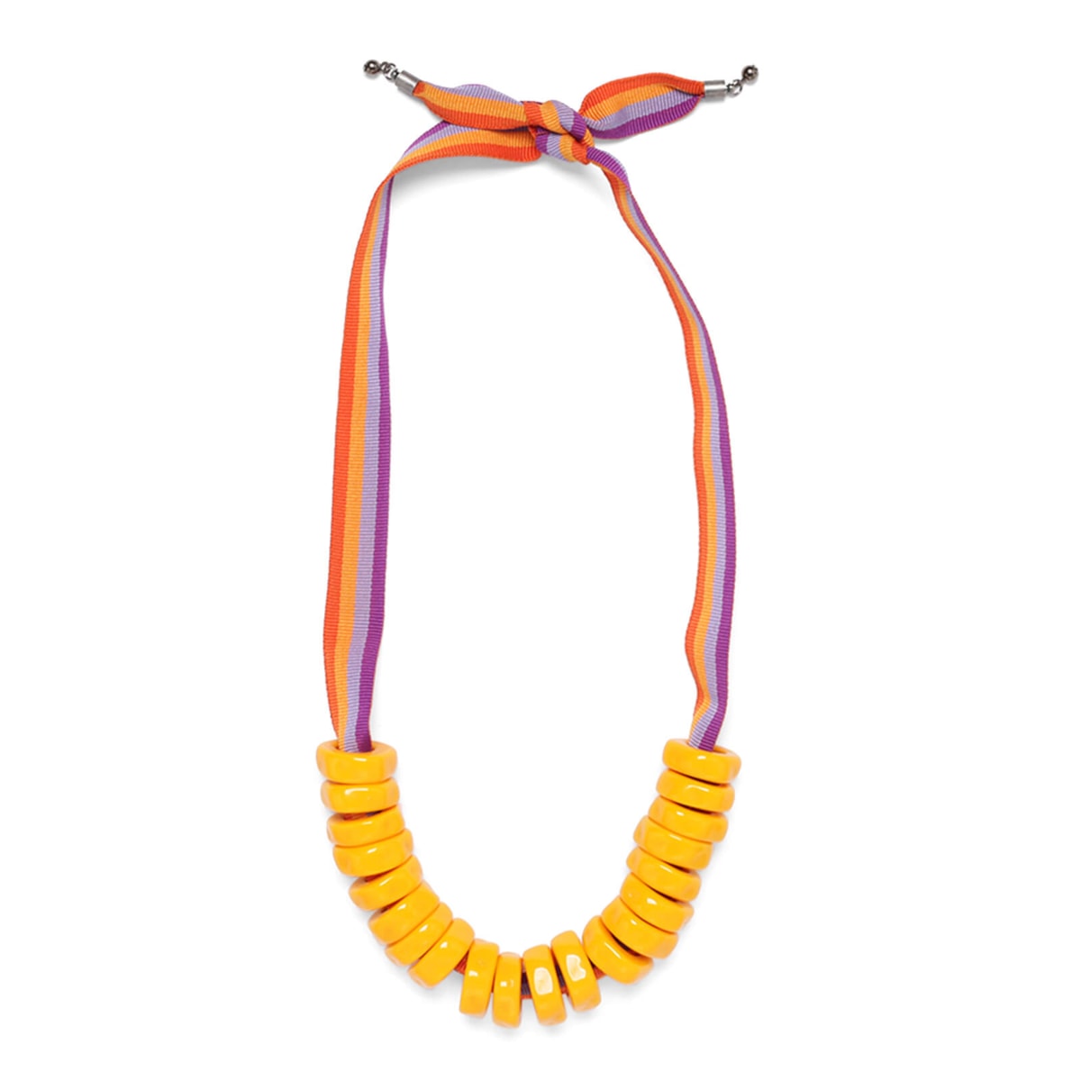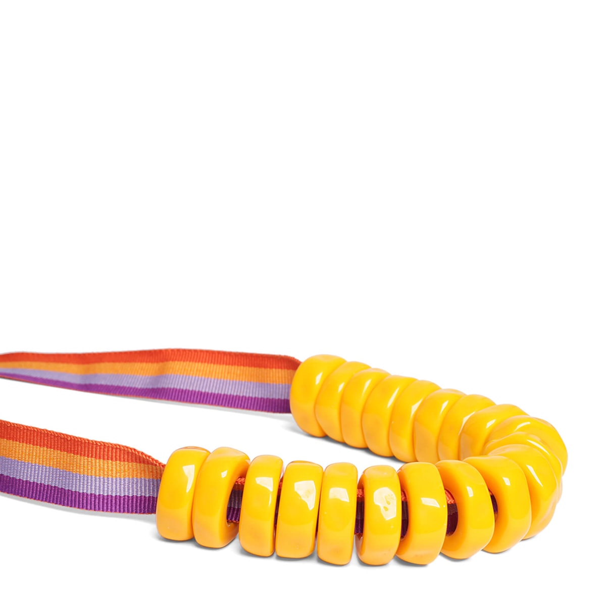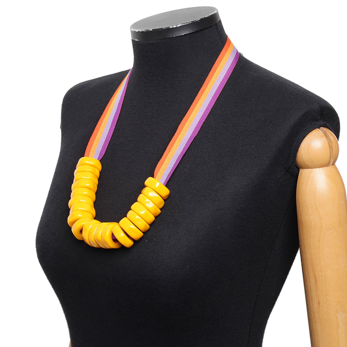 colar feito em resina/fita com cores vibrantes para um look casual.