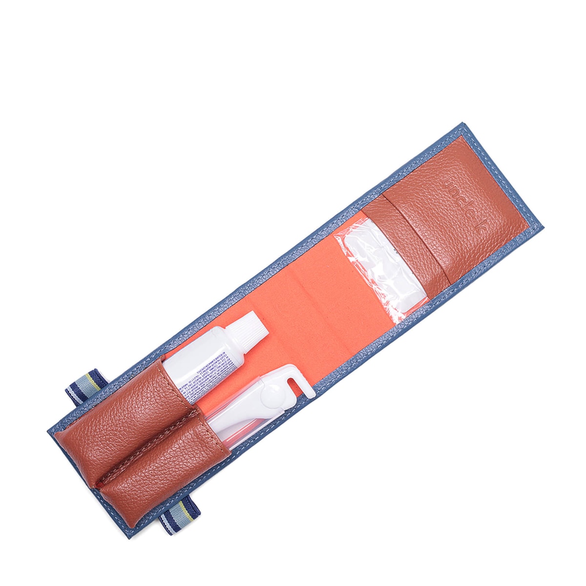 Sem ocupar espaço na bolsa e protegendo seus itens de higiene pessoal das sujeirinhas, o kit sorriso couro 70217 v24 é indispensável.