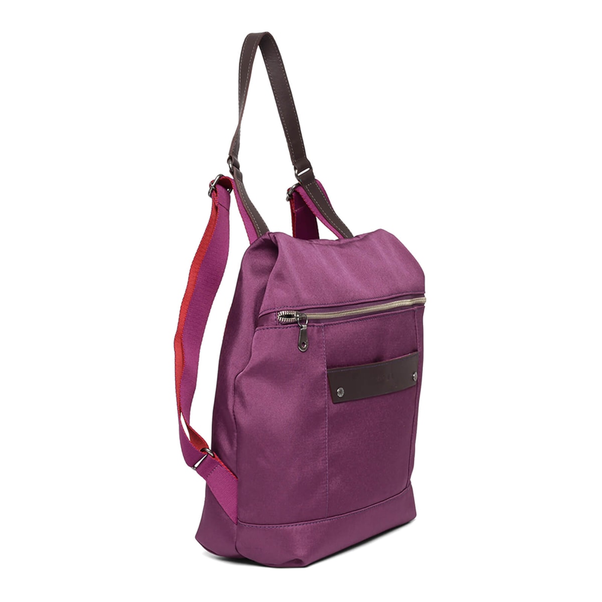 A mochila nylon 60964 v23 possui detalhes e alça em couro. Além de compartimento frontal e fechamento em zíper.