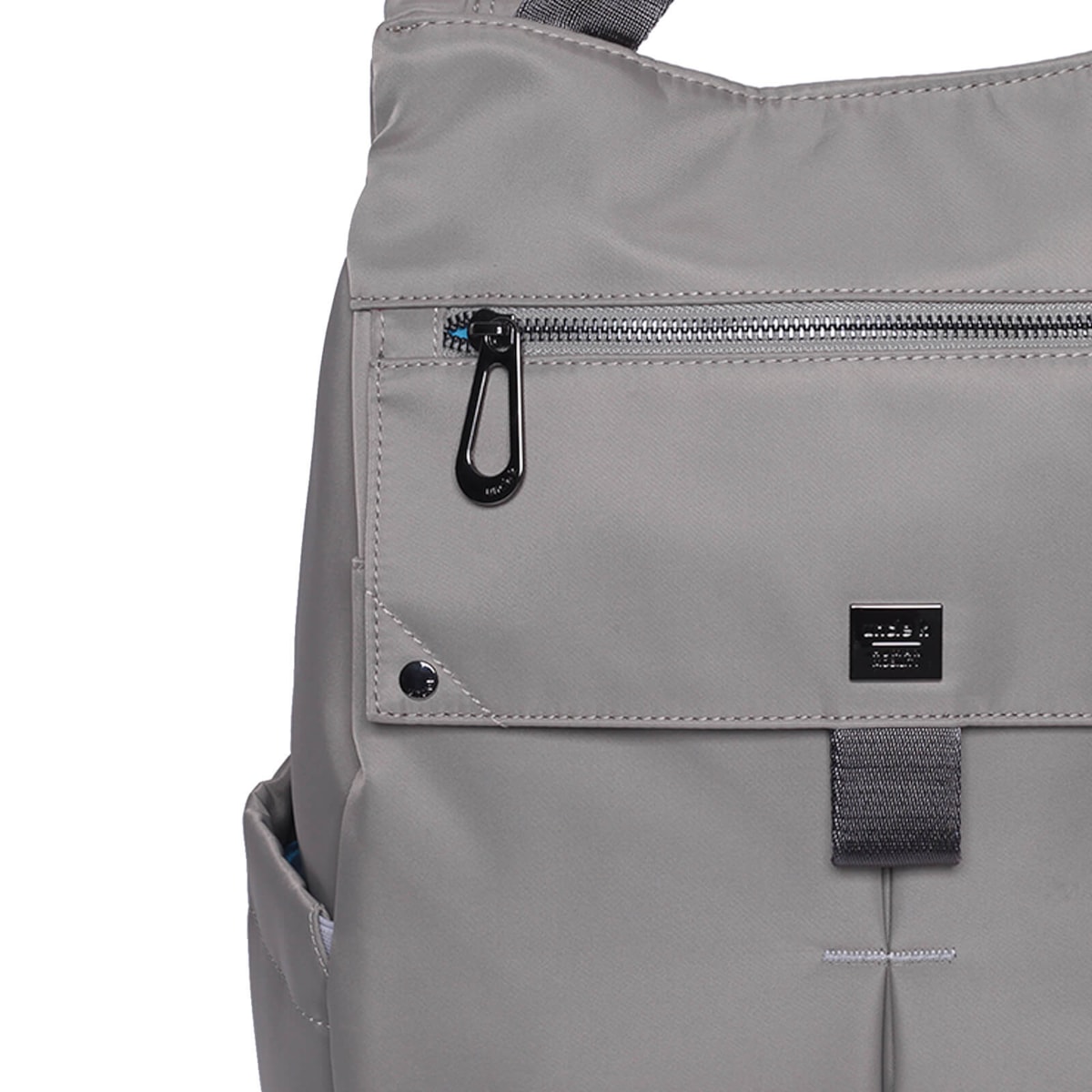 • Bolso frontal com zíper de metal na tampa