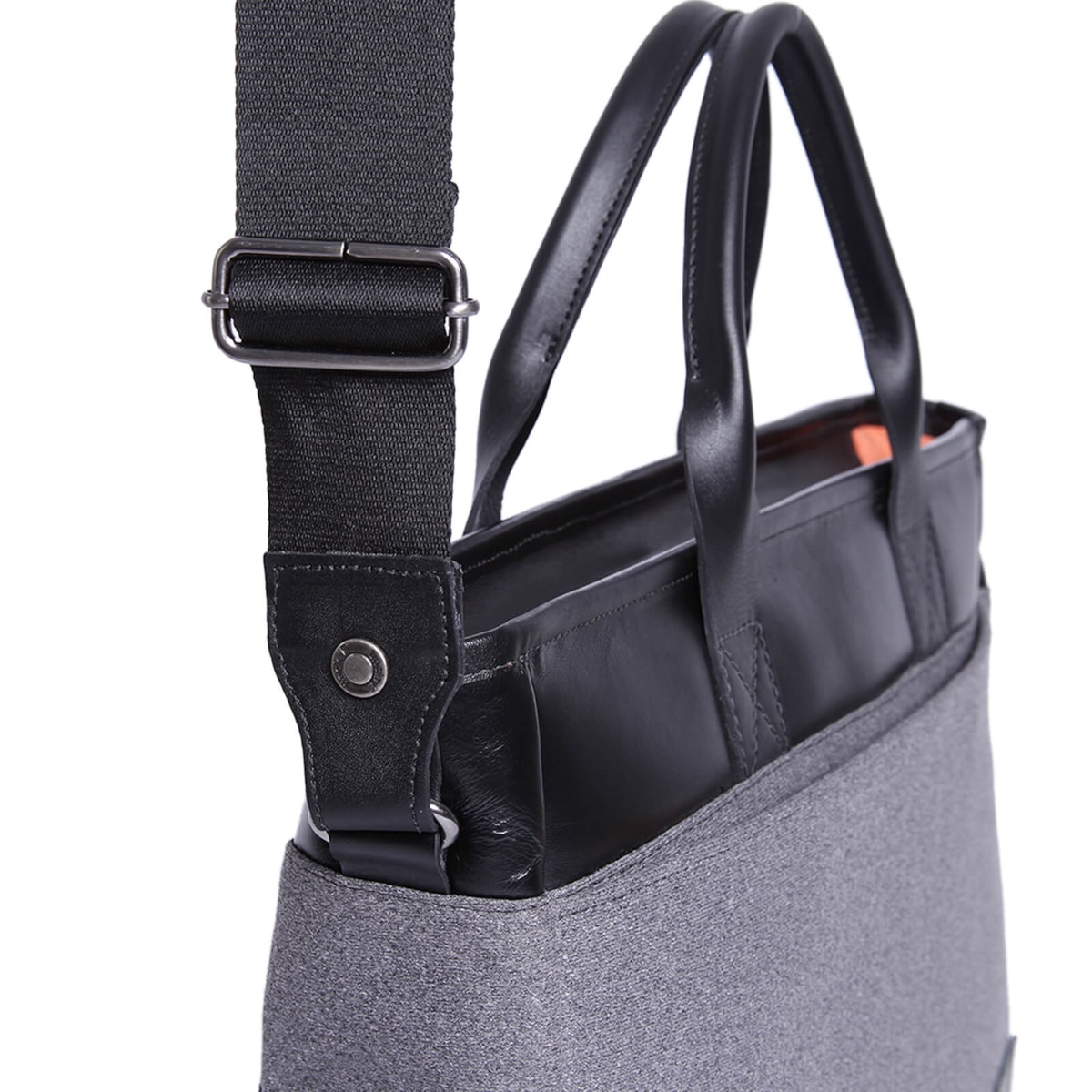 •Faixa em couro na parte de trás para acomodar na mala de mão