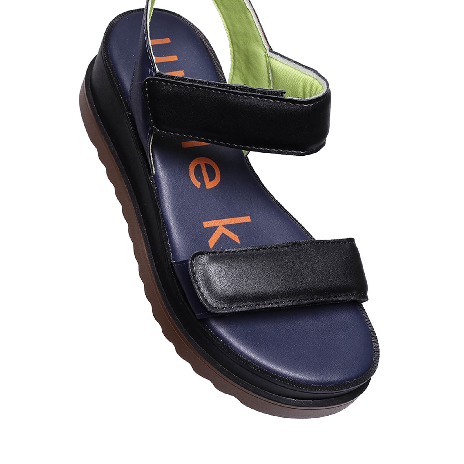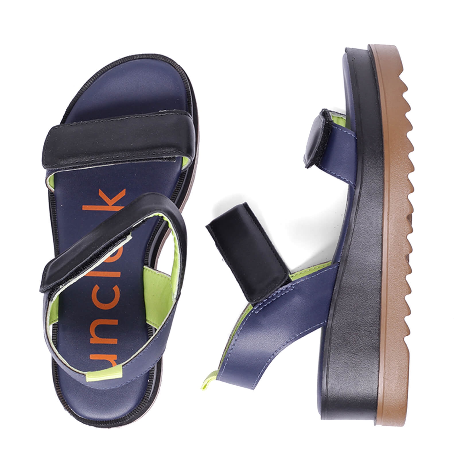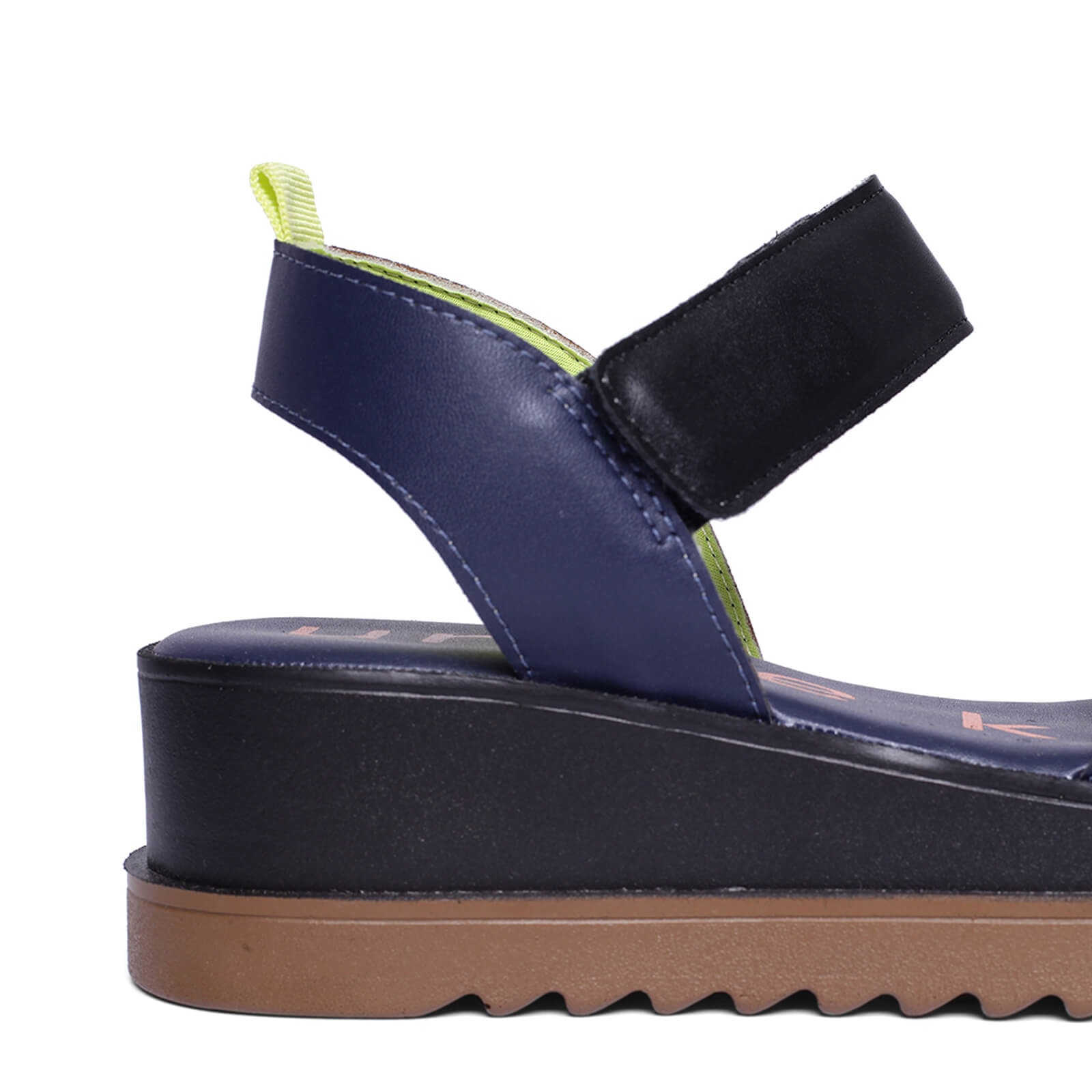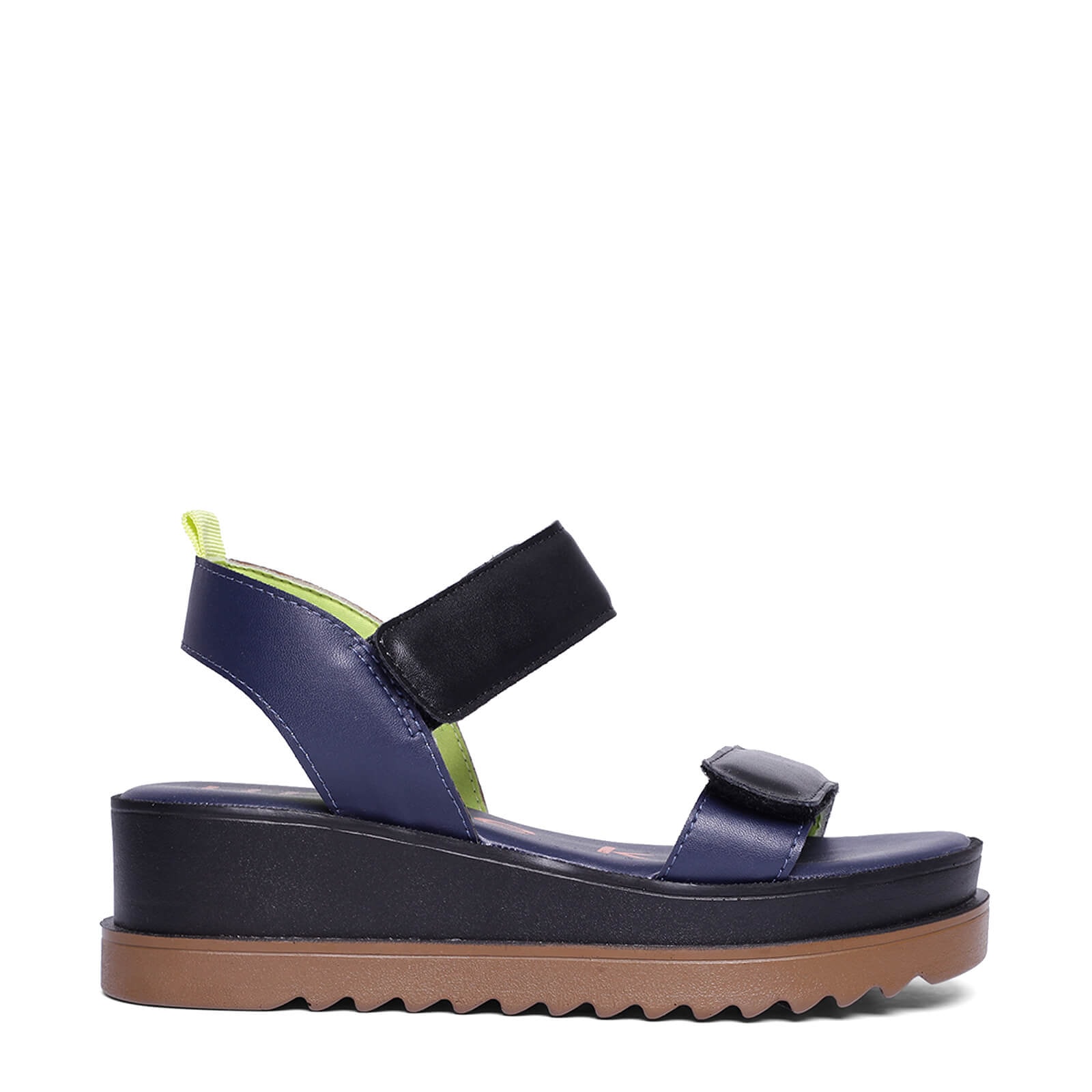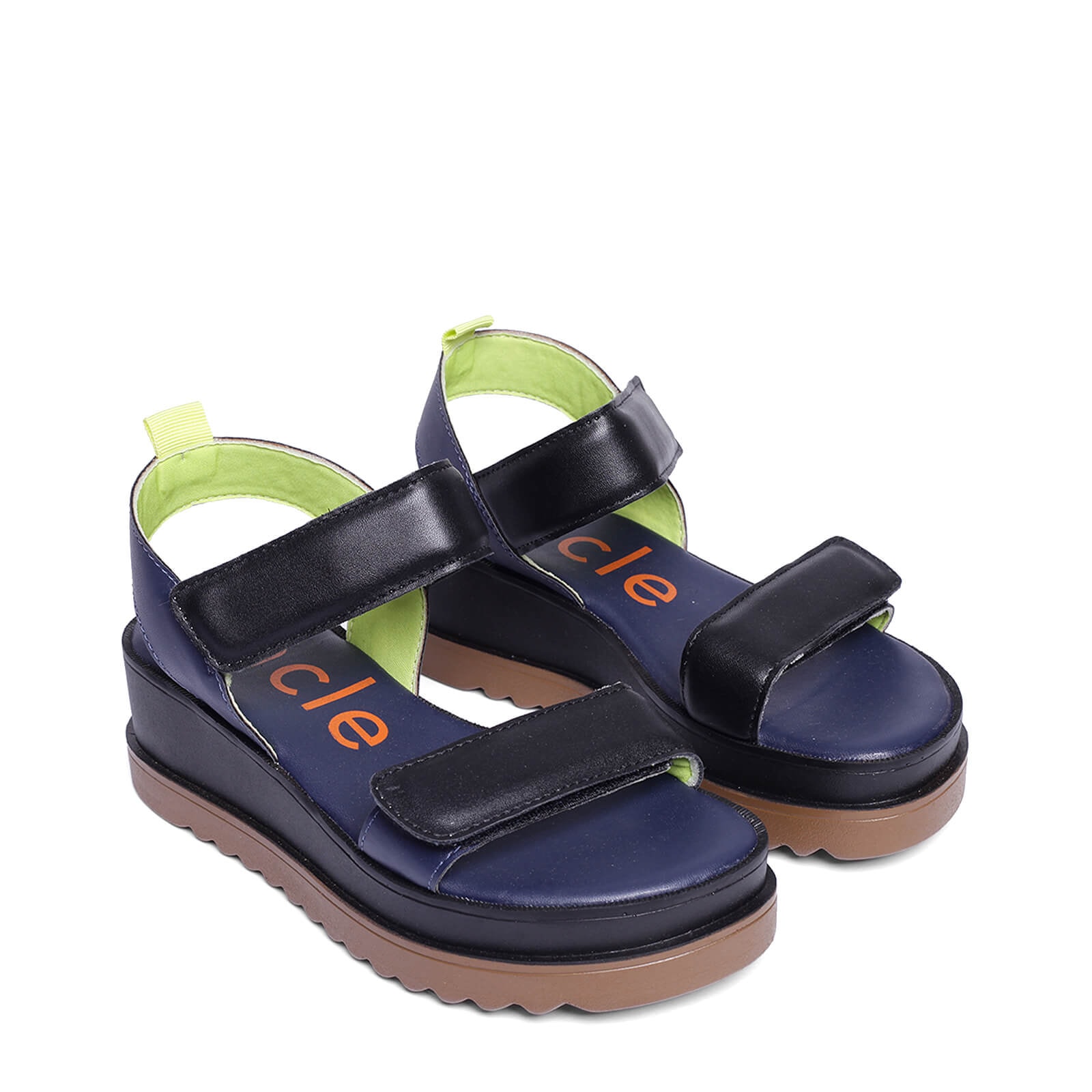 Plataforma Uncle-K bicolor em napa com fechos em velcro e solado tratorado.