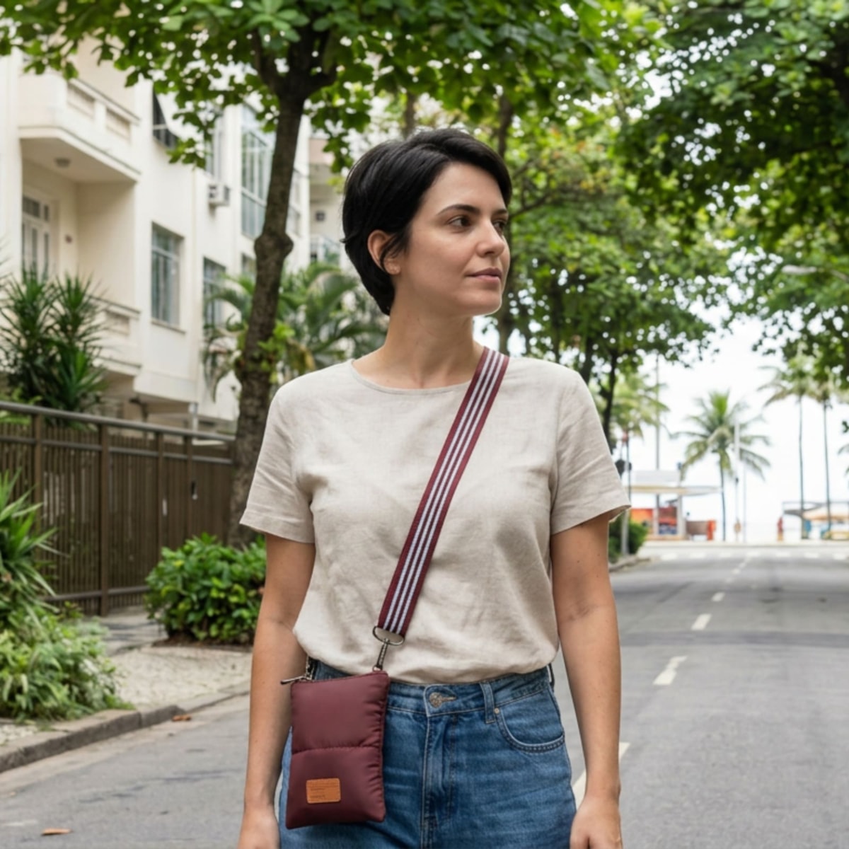 O porta celular 70564 é uma peça versátil, confeccionado em nylon satin com costura matelassê acolchoada, macio ao toque. Com fechamento em zíper, alça removível e ajustável, é ideal para o cotidiano.