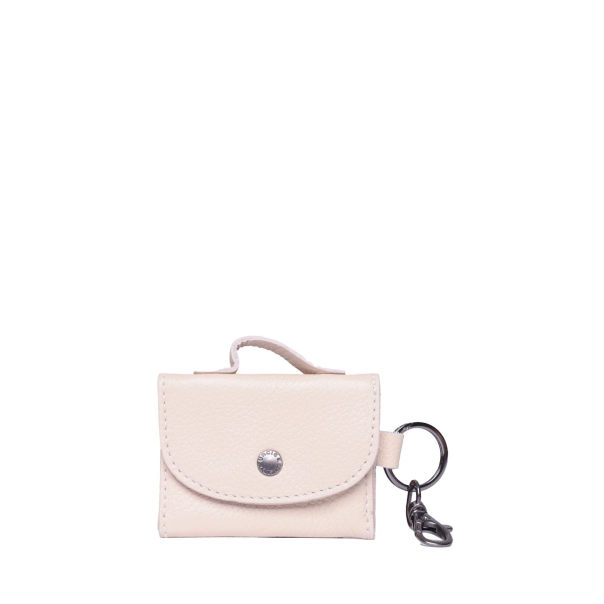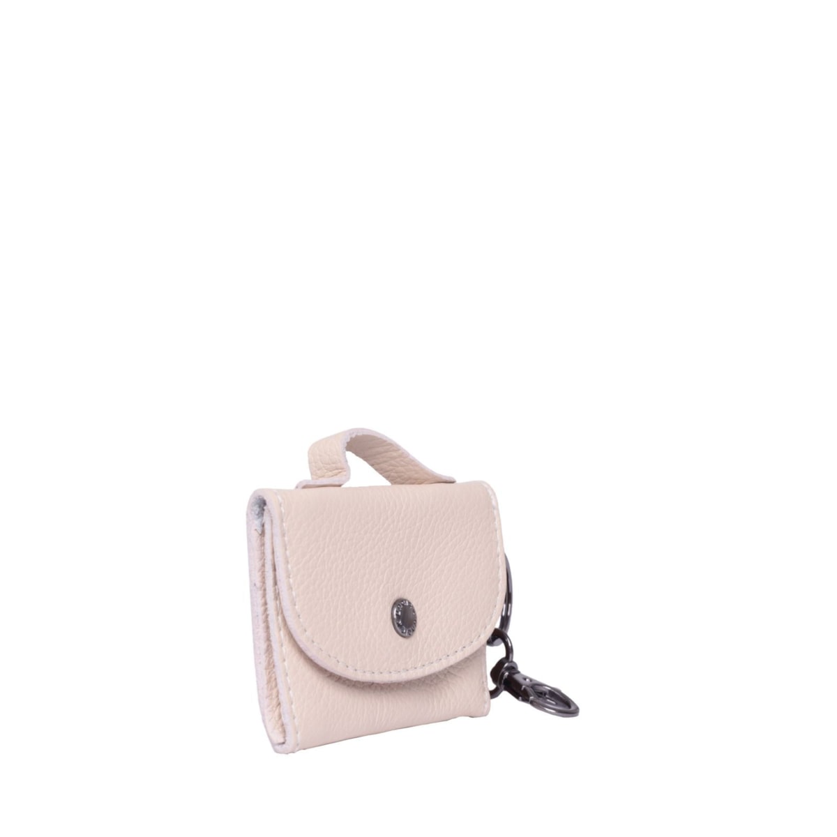 Porta fone couro 70488 v24. Ideal para guardar a sua caixinha de fones de ouvido recarregável. Possui fechamento em botão e acompanha mosquetão para prender na bolsa/mochila.
