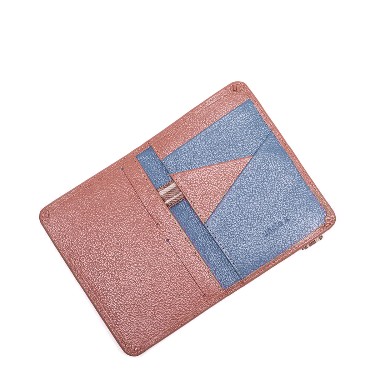 Porta passaporte couro 70350 v24 possui divisórias e fechamento principal com elástico. Perfeito para organizar os documentos!