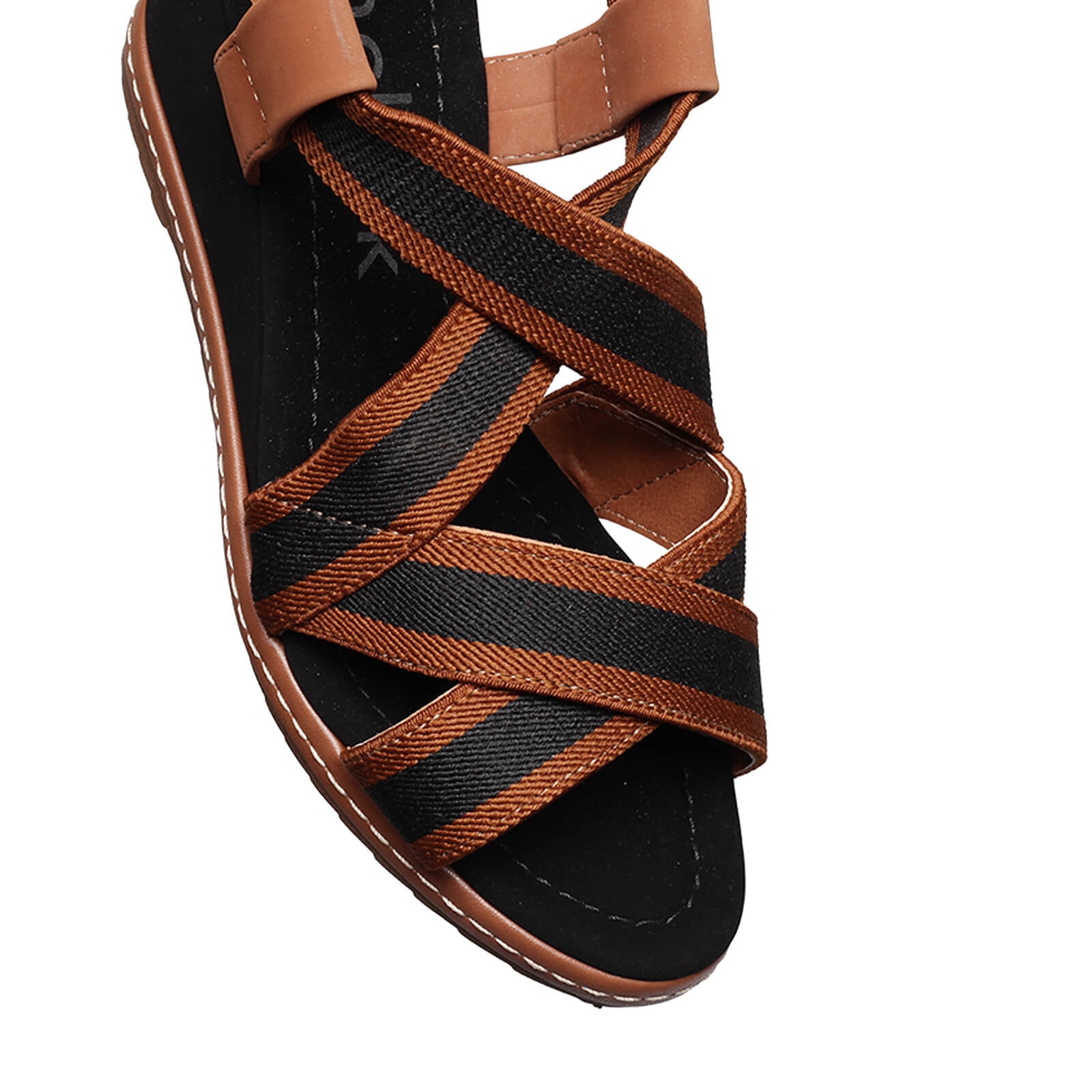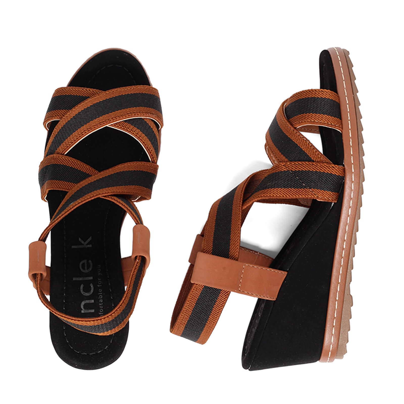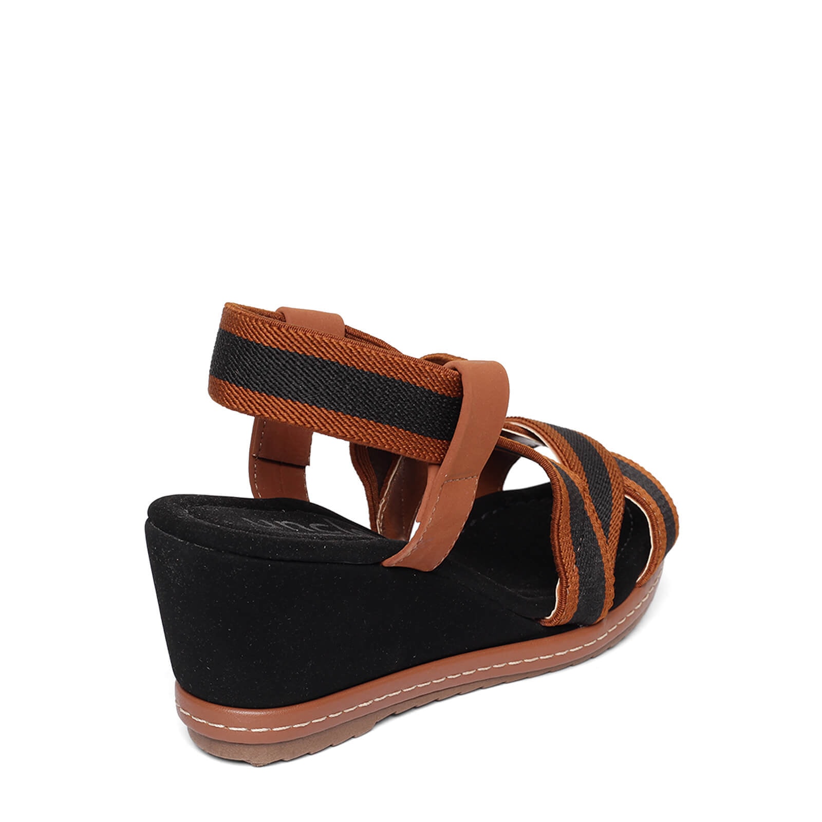 sandália anabela elástico valen v23 com solado em borracha, salto em camurça e tiras de elástico bicolor.