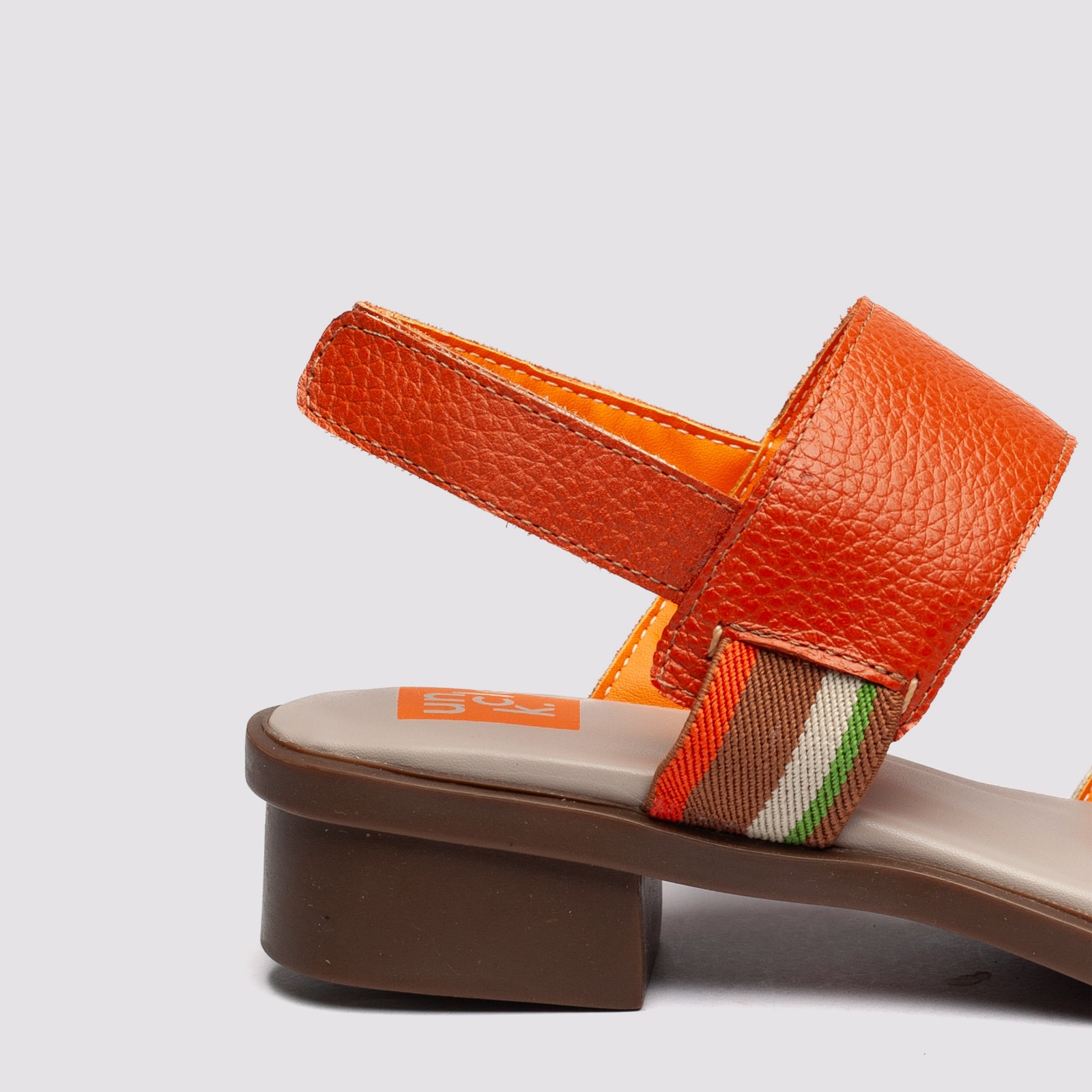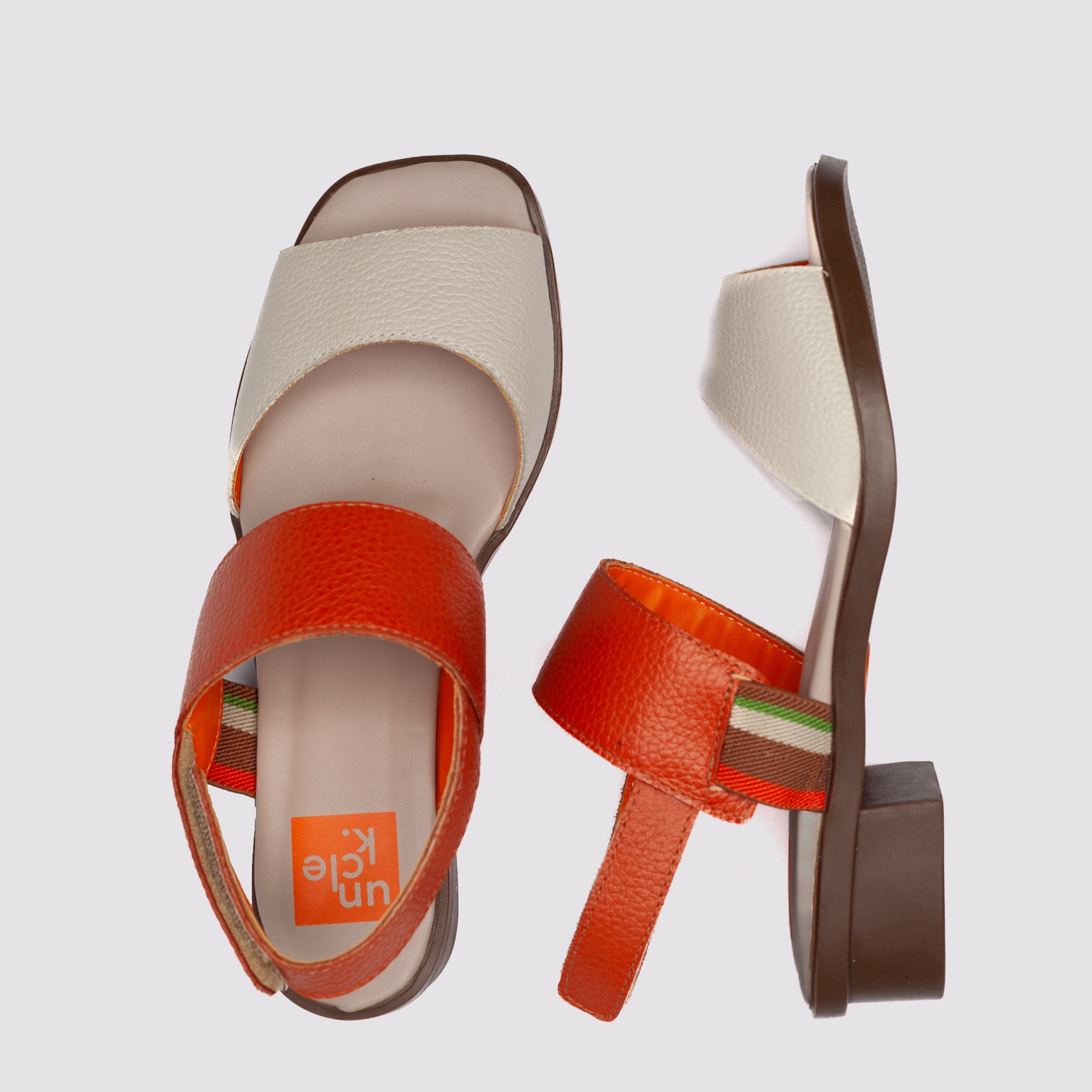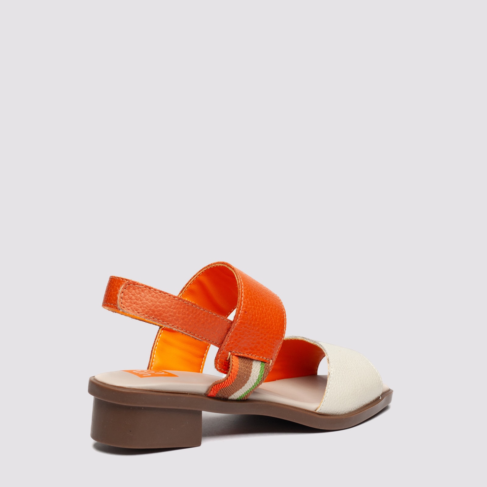 Sandália feminina billy em couro legítimo nas cores caramelo ou off white com laranja, com design minimalista e elegante. Possui tiras largas que garantem firmeza e conforto ao caminhar, além de fechamento prático no calcanhar. O salto baixo bloco proporciona estabilidade e versatilidade para o dia a dia, combinando estilo e bem-estar. Ideal para compor looks casuais ou sofisticados, é a escolha perfeita para quem busca uma sandália confortável, durável e cheia de personalidade.