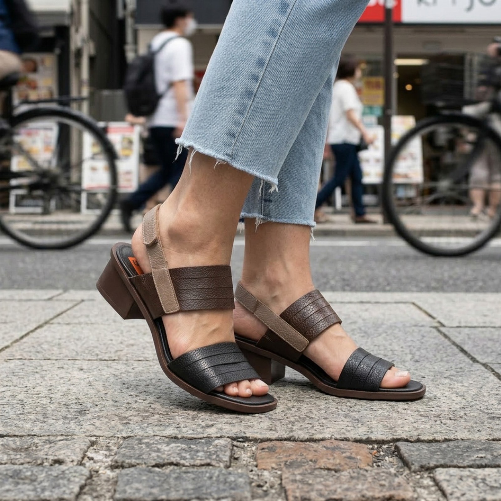Sandália feminina com salto geométrico e design contemporâneo. Possui tiras largas em mix de cores e texturas que trazem personalidade ao modelo, além de velcro no calcanhar para ajuste confortável. O salto estruturado garante estabilidade e estilo, perfeita para produções modernas do trabalho ao happy hour.