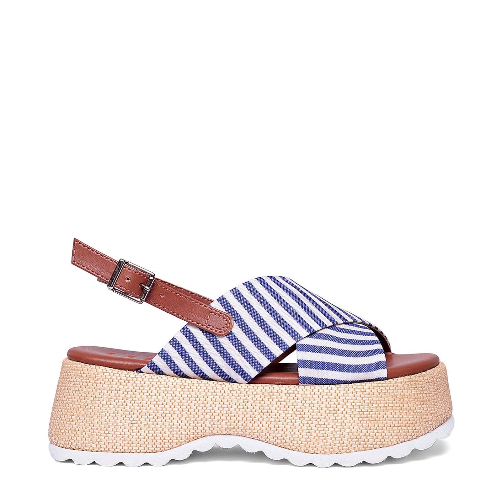 • Cabedal em Tecido: O cabedal, a parte superior da sandália, é feito de tecido, o que proporciona um ajuste confortável e respirável.