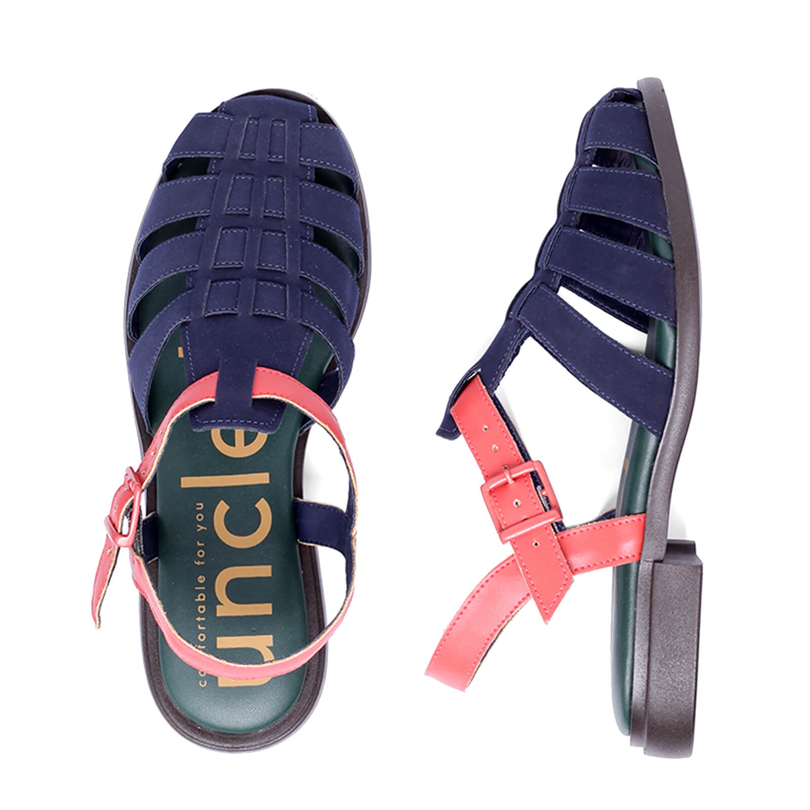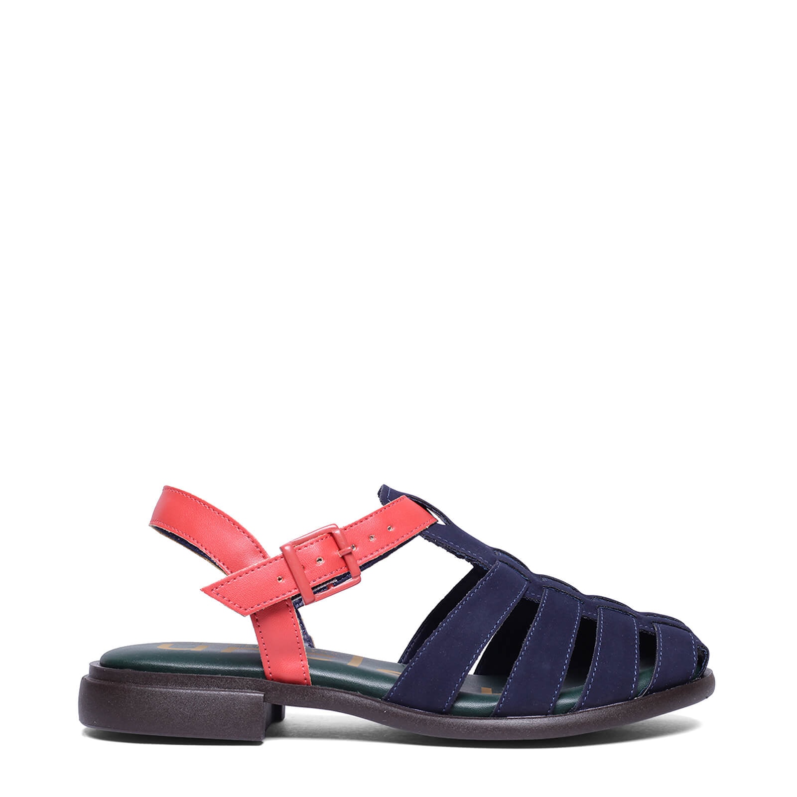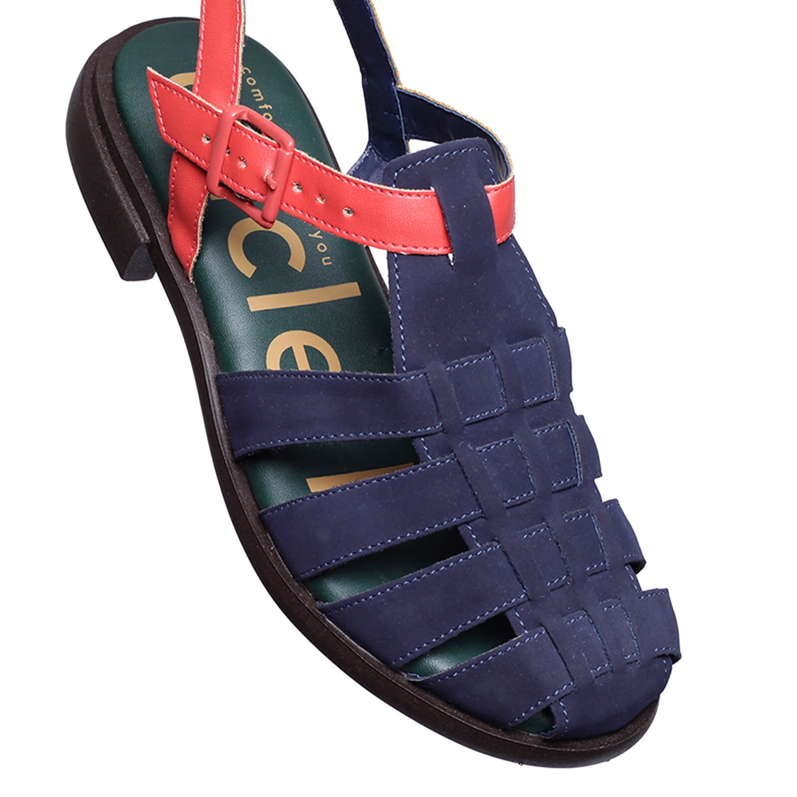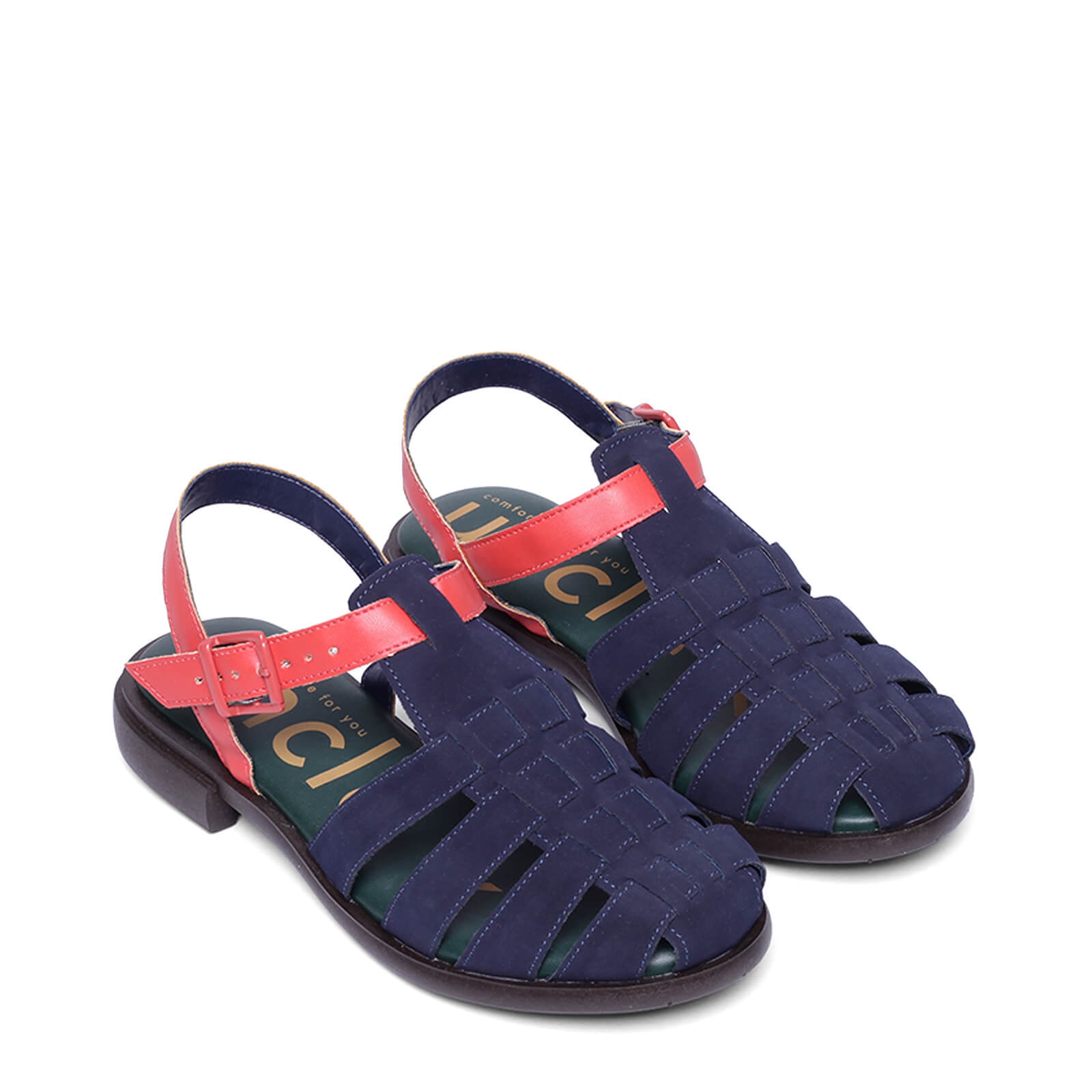 Muitas das praias do mar Mediterrâneo são de pedra e não de areia, então os pescadores franceses usavam sandálias de borracha para proteger seus pés. A sandália virou hit e várias versões surgiram. Esta é a nossa Fisherman (pescador em inglês). Nesta coleção ela vem com cabedal nobuckado em cores contrastantes, palmilha com espuma macia e um levíssimo solado em EVA flexível.