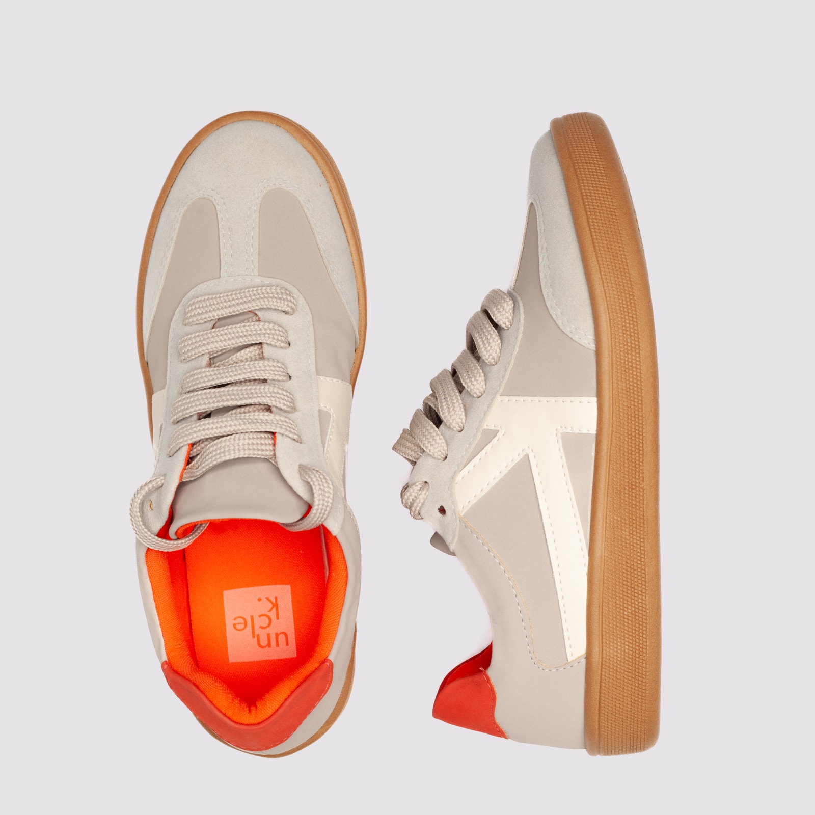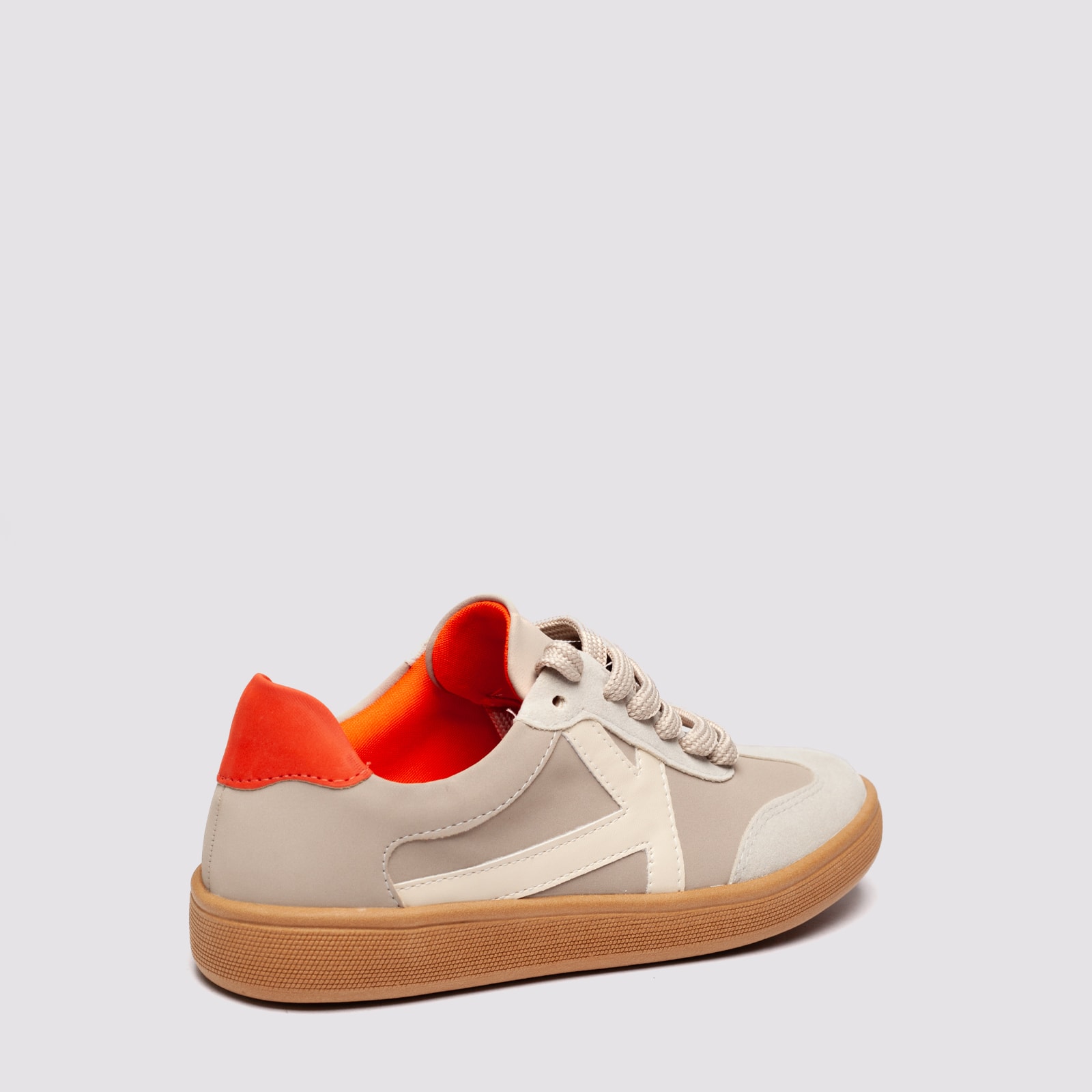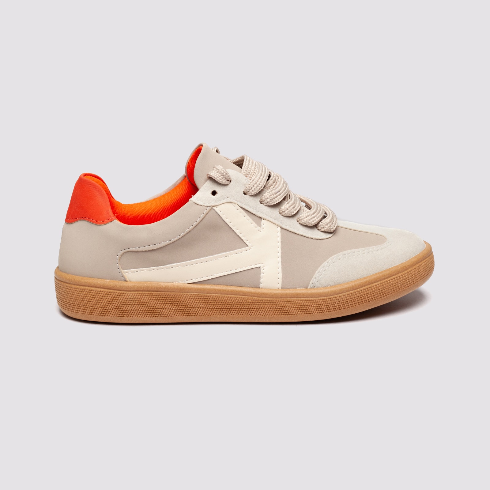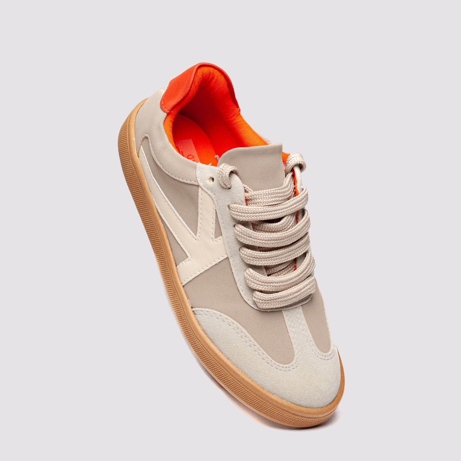 Tênis casual feminino em material vegano, com solado emborrachado e detalhe interno em cor contrastante. Confortável, estiloso e sustentável, ideal para compor looks urbanos com personalidade.